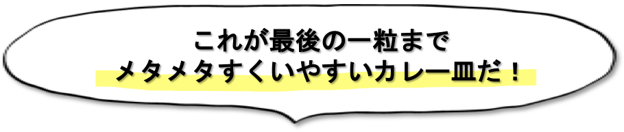 そこで僕は、この “ちょい残しカレー” の日常化に歯止めをかけるべく、最後の米粒ひと粒まですくいやすいカレー皿を作りました。