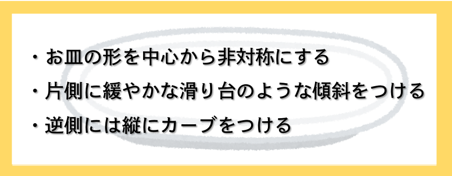 底の円(高台)は、障がい者用の皿を参考にして中心をズラす設計に。