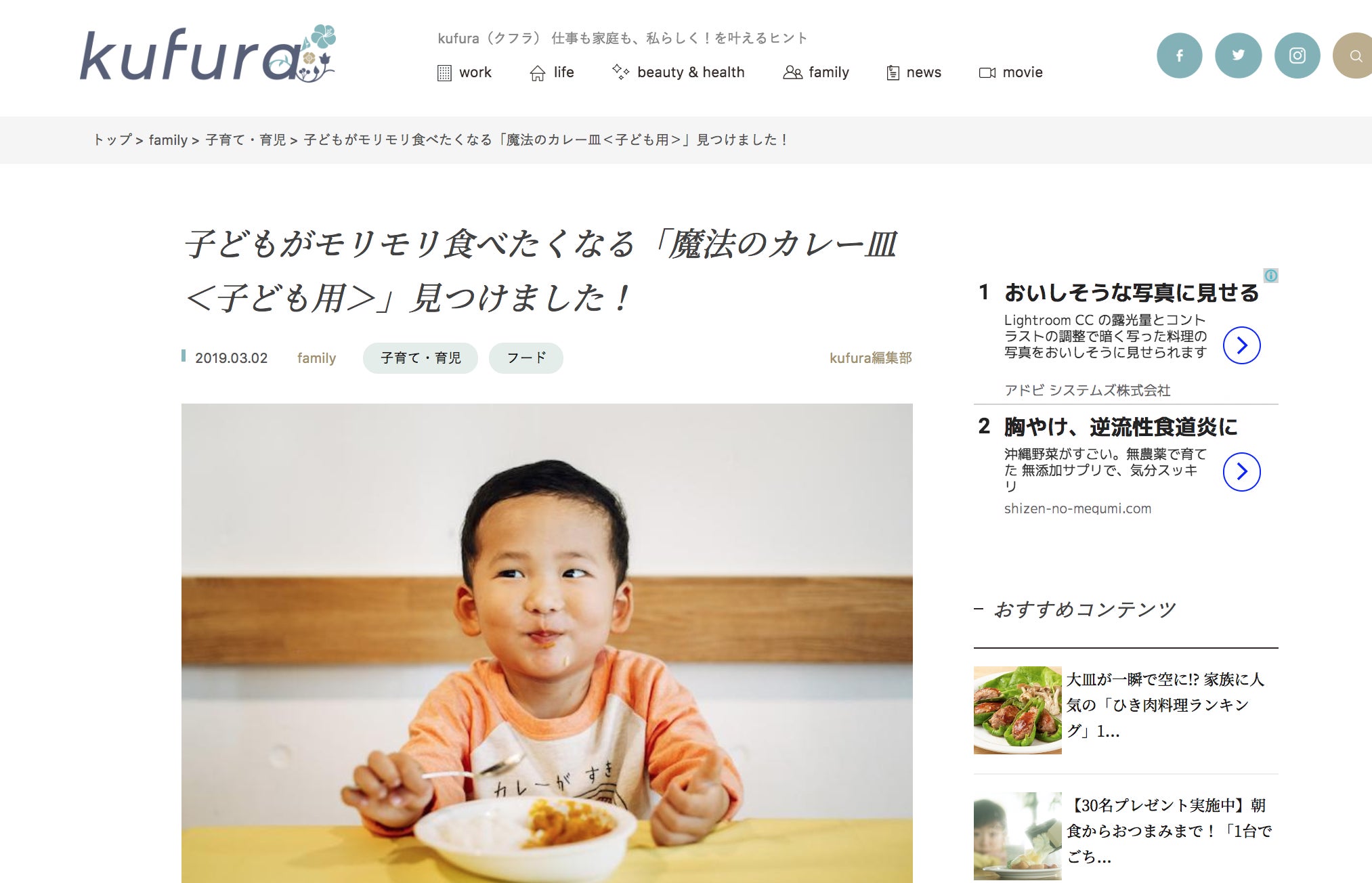 小学館のWebメディア「kufura(クフラ)」にて、現在クラウドファンディング挑戦中の「最後の一粒までメタメタすくいやすい【 英才食育カレー皿 】」が紹介されました!