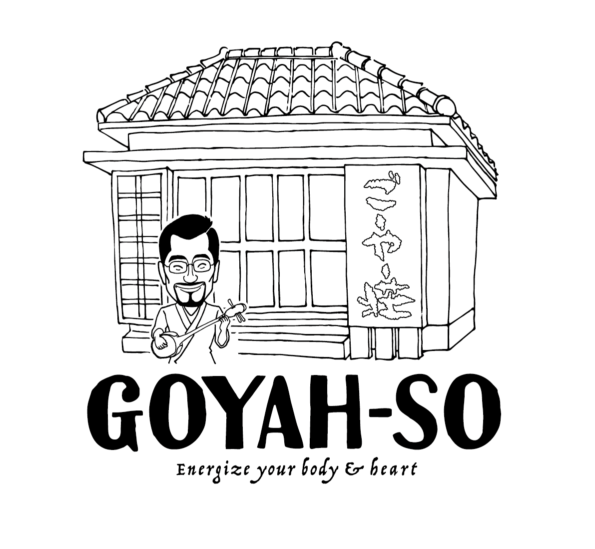 前回のごーやー荘と三線と私の絵柄に、「GOYAH-SO」の文字を修正して、こちらのデザインで最終決定としたいと思っています。