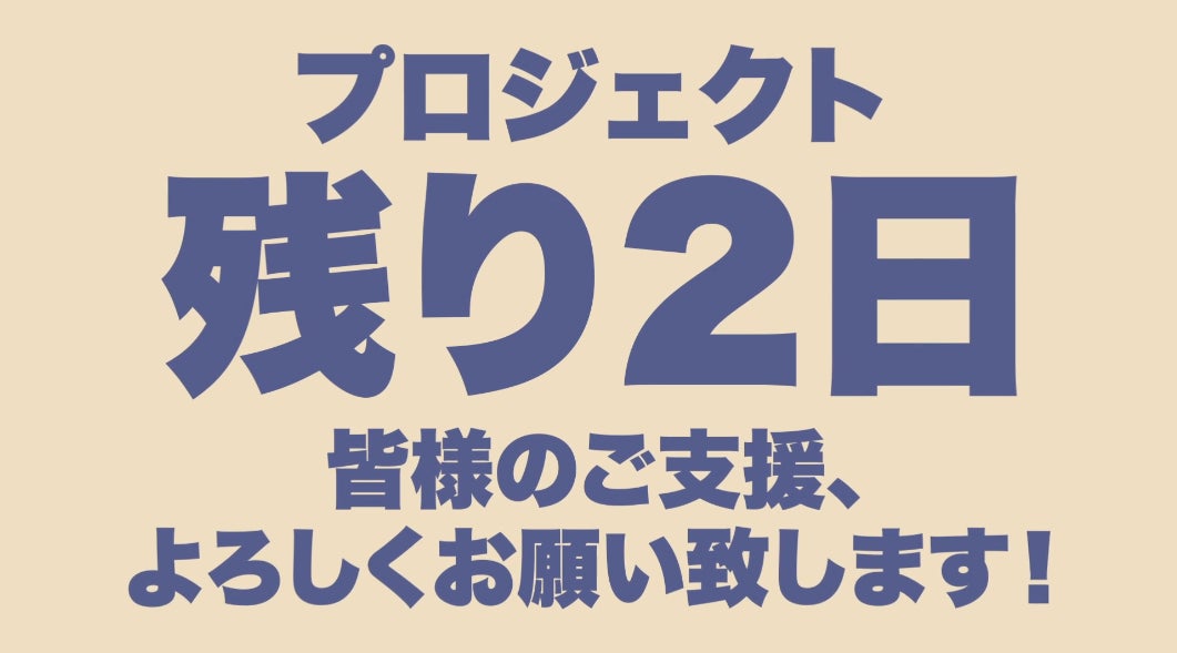 まだまだ目標額までより多くのご支援が必要です。明日23日の23:59まで受付しています。