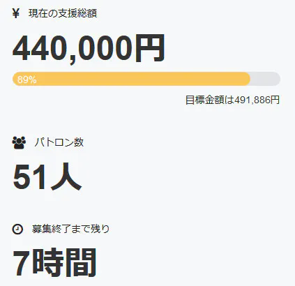 先程、更に一名の方が追加でご支援を行って下さいました。