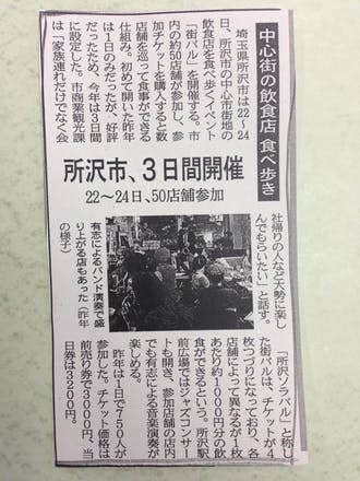 ▲所沢市内40店以上の飲食店で「街バル」を行います。昨年は市長(右端)も参加してくれました