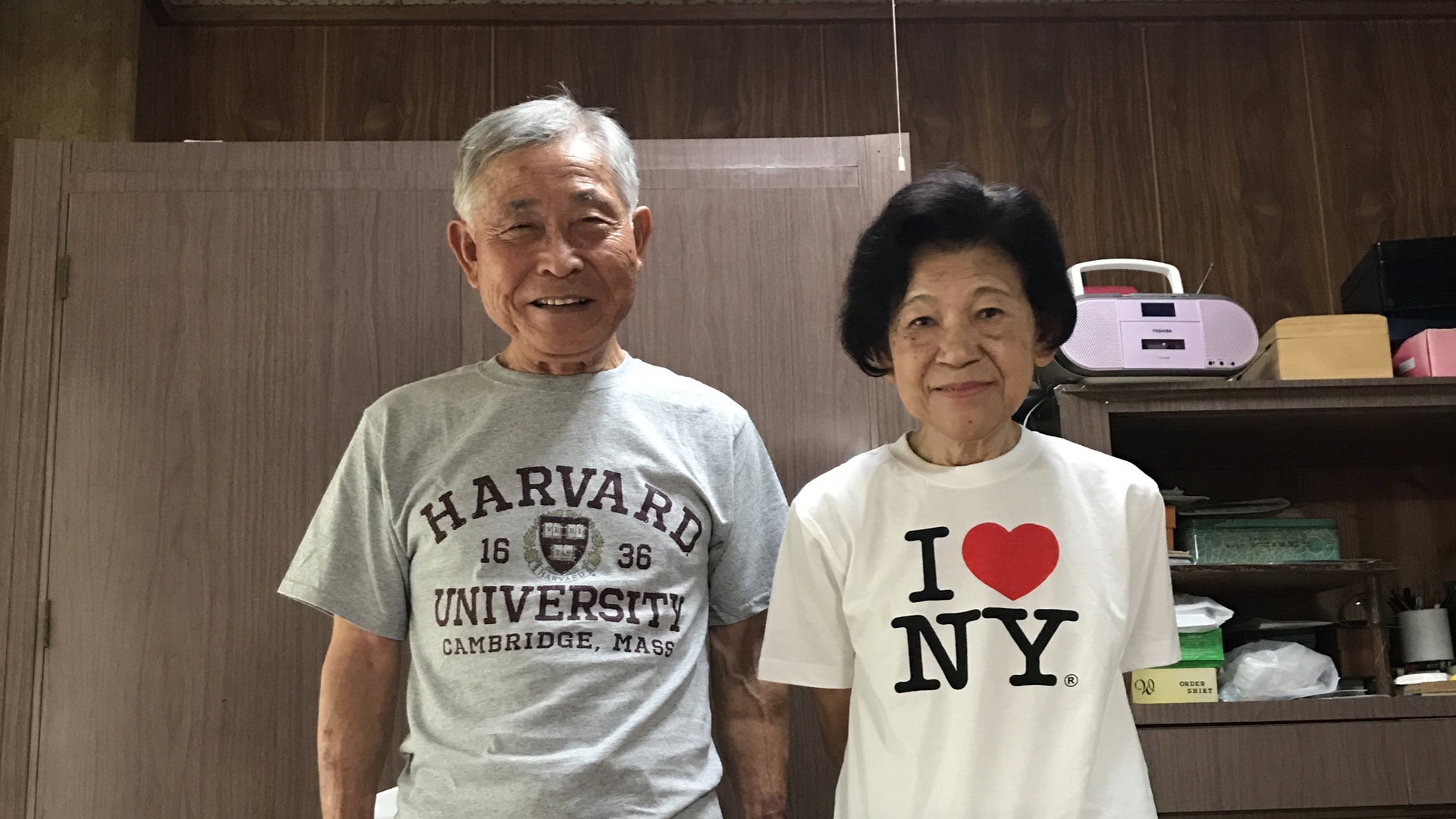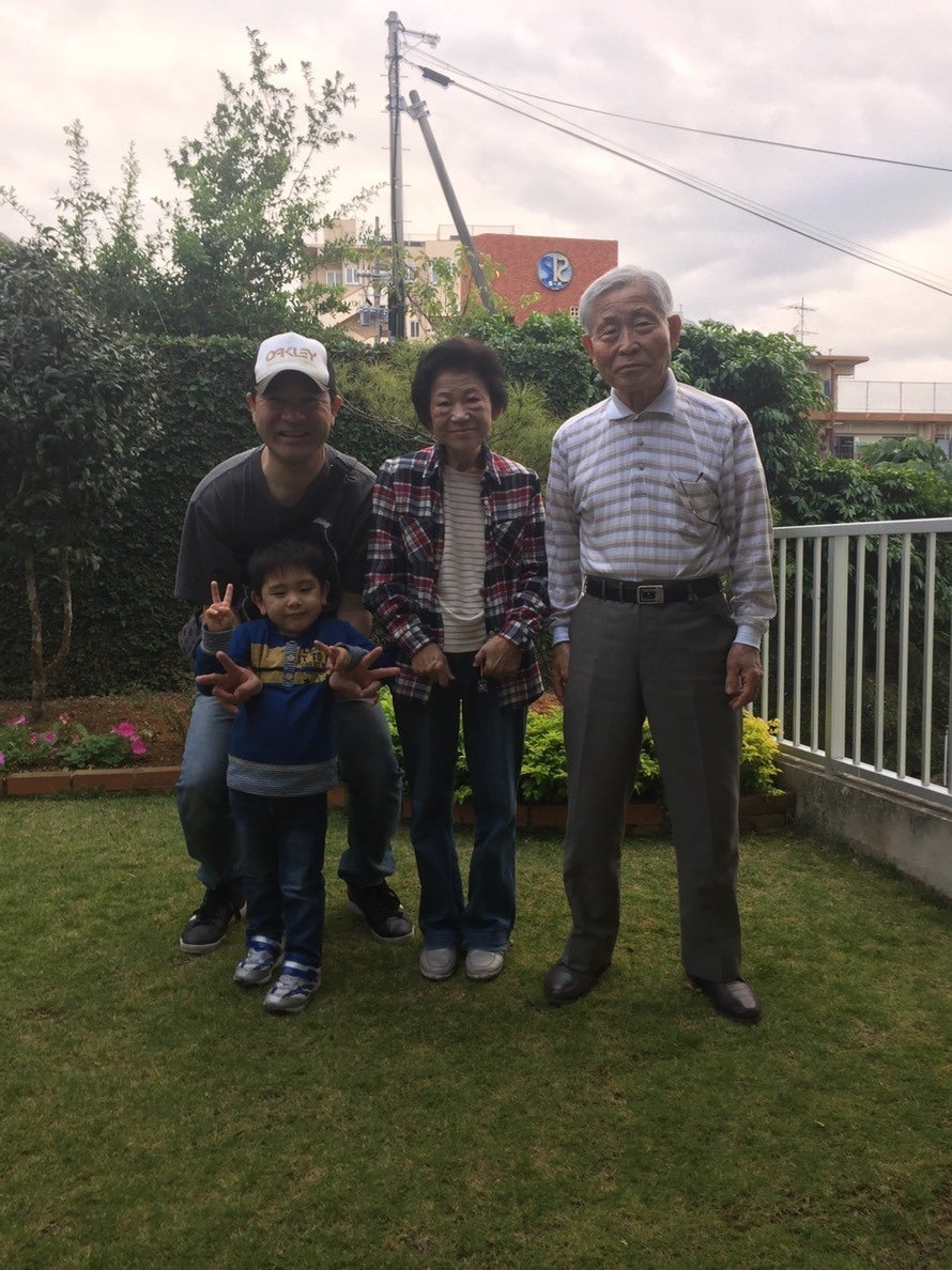 (那覇市在住の僕の祖父母。写真は留学のお土産をあげた時)