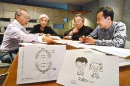 乳歯を分析する民間測定所開設に向け、話し合いを進める松井英介医師(右から2人目)ら=岐阜市で(写真:2017年10月4日 中日新聞朝刊1面より)