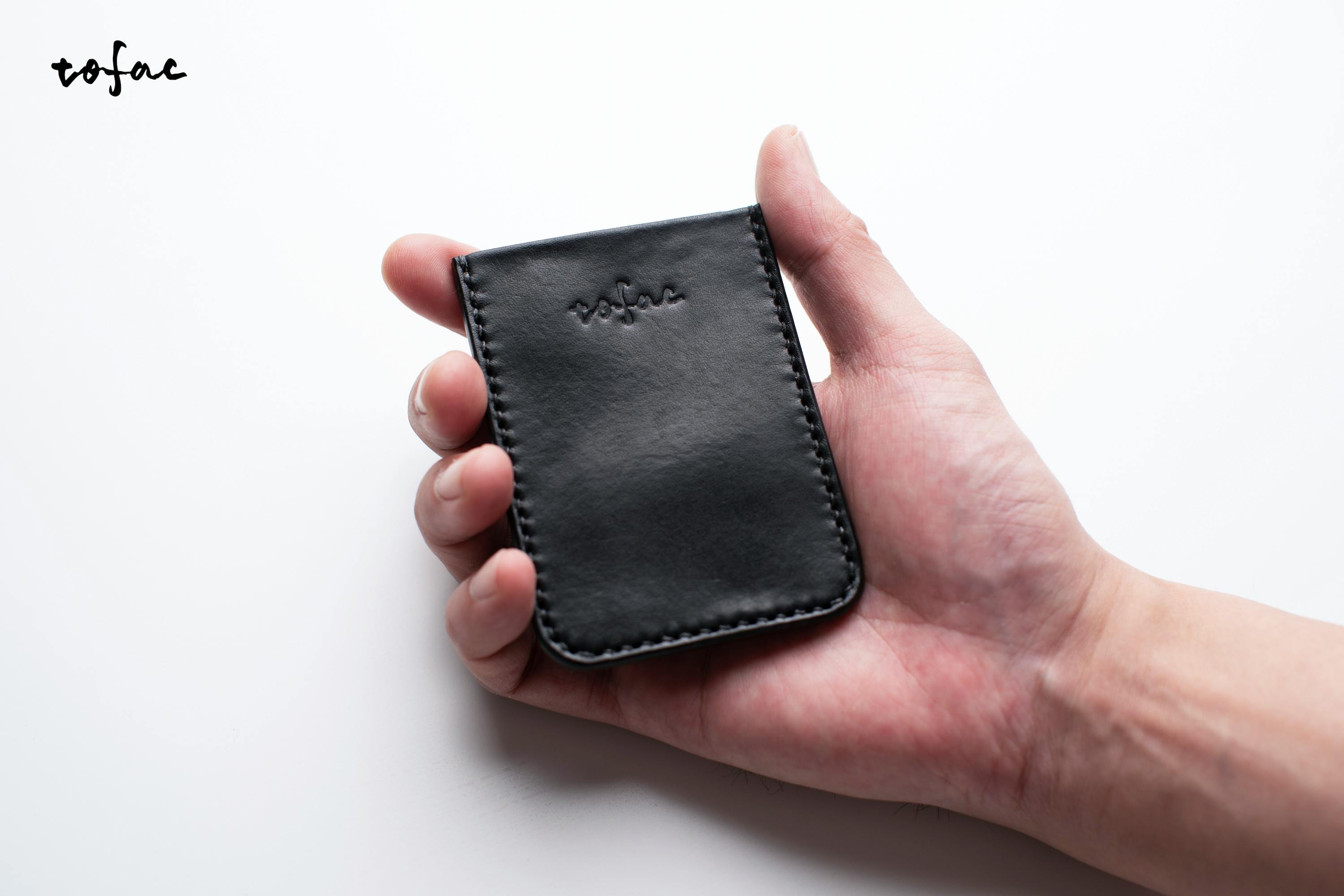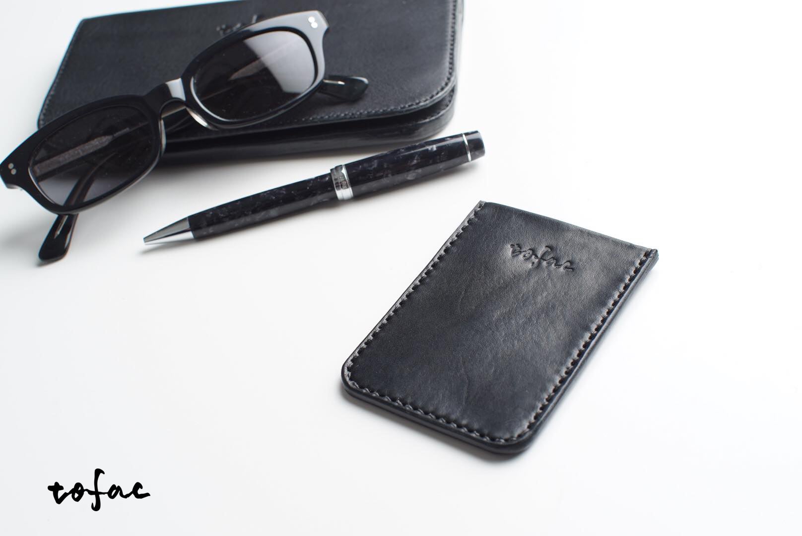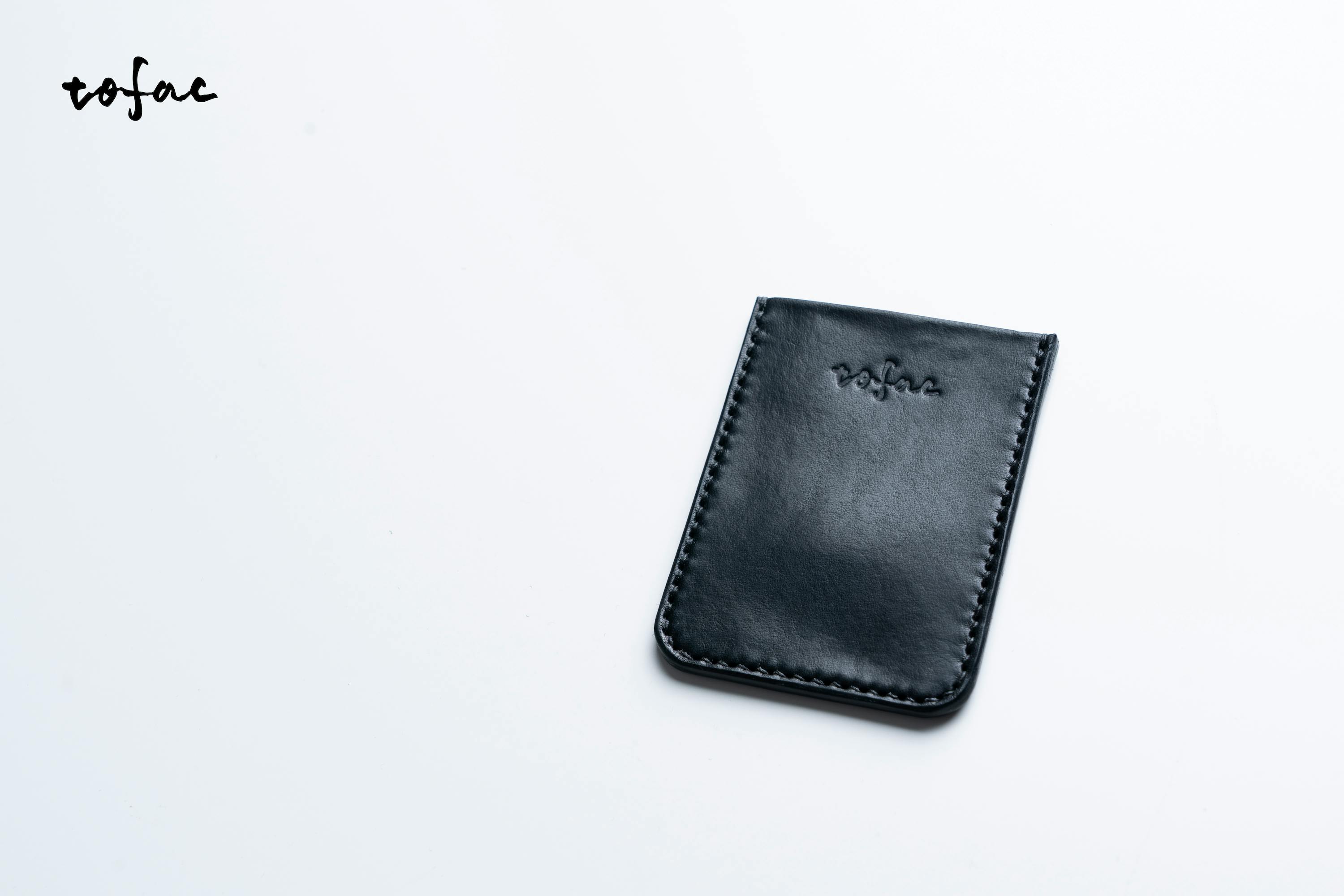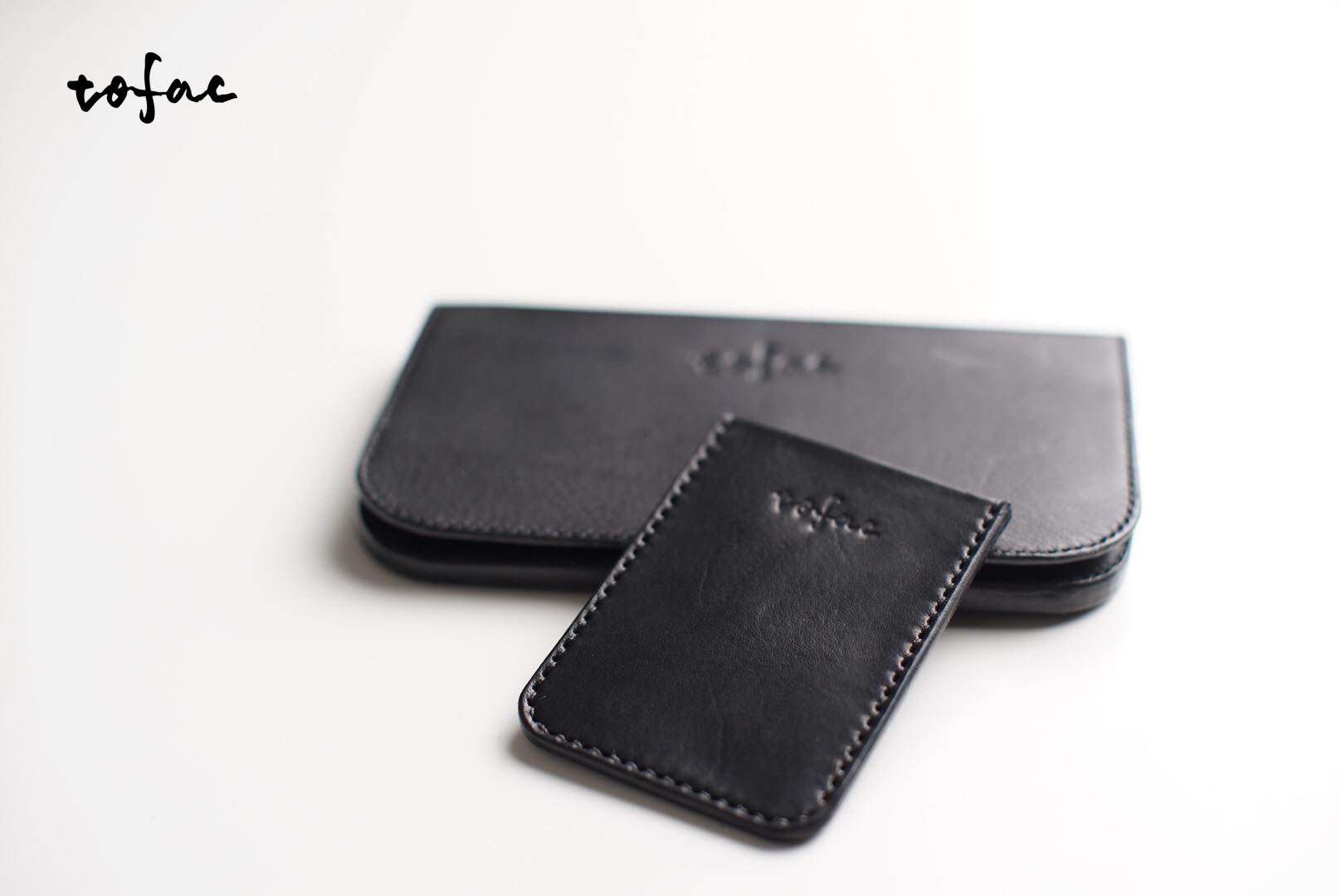 今回共同作品の証として、東京ファクトリーの革モノブランドロゴ「tofac」と、家田祐司氏個人名でのブランドロゴ「yuji ieda」が、両面でコラボレーションしています。シンプルでありながら、特徴ある独特のデザインを生んでいます。