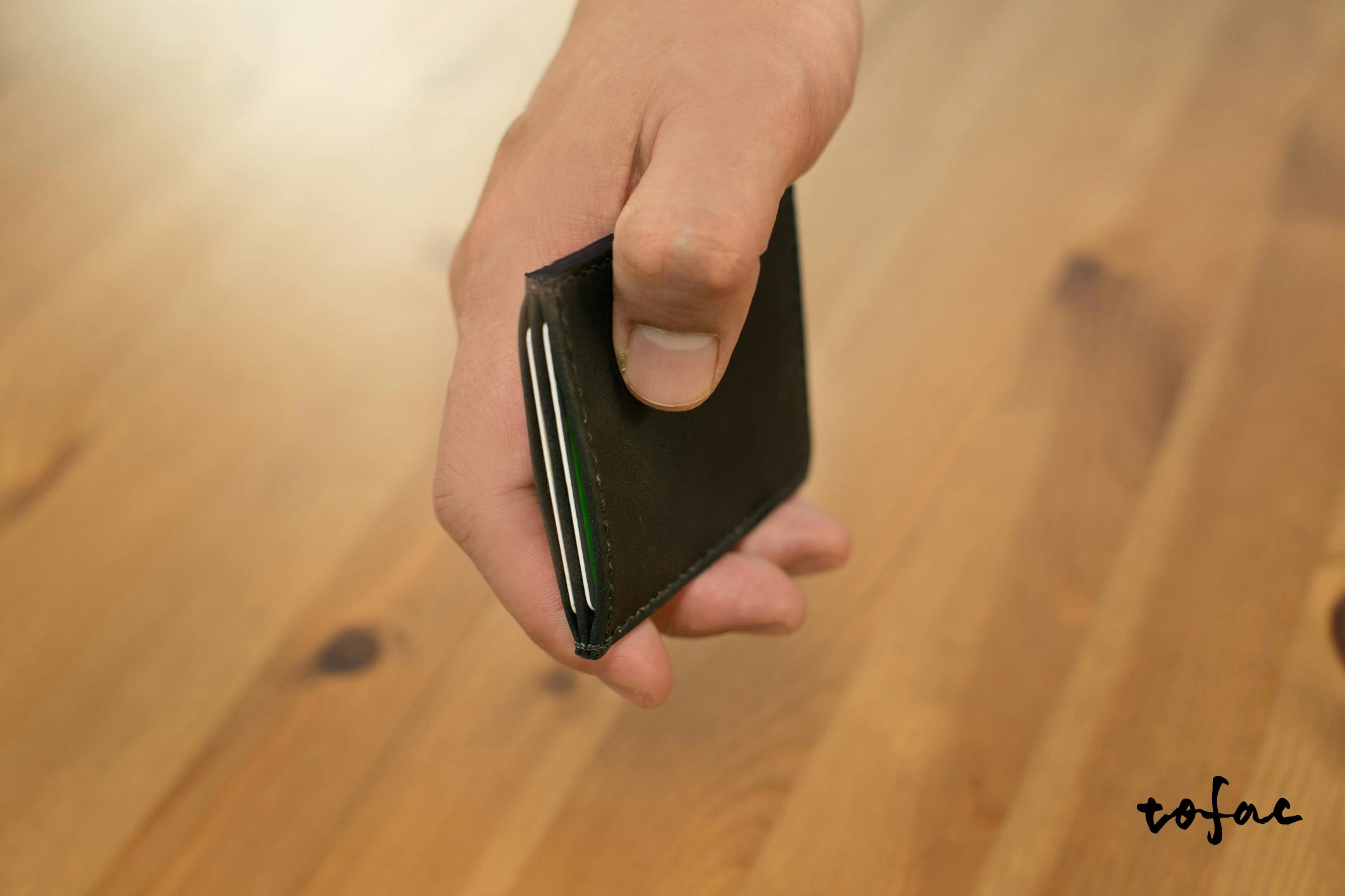 角の微妙な丸み。カード、名刺が入るジャストサイズ。ギリギリまで薄くしながらも残したバケッタレザーの上質感。さまざまな追求、絶妙なバランスで、ちょうどいいサイズ感、使用感を実現しています。