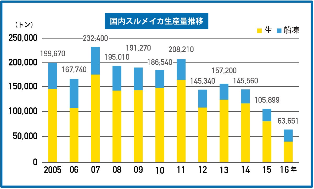 国内スルメイカ生産量推移(参考資料:全漁連イカ類需給動向)