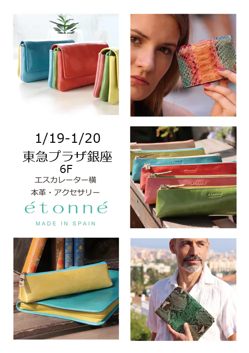2019/01/18 20:26いよいよ明日19日(土)から2日間の出店が始まります。関東近郊の方、是非お越しくださいませ!1月19日(土)、20日(日)の限定二日間、東急プラザ銀座でポップアップストアの出店します!ーーーーーーーーーーーーーーーーーーーーーーーーーーーーーーー地中海の風景が浮かぶ鮮やかな色合いと、本革なのに驚きの軽さが特徴のエトネ。知る人ぞ知る、アンダルシアの世界的有名ブランドを仕立てる職人が集まる村の工房で、ひとつひとつ熟練職人が丁寧につくっています。詳しくはこちらからhttps://etonne.es/blog/2019/01/15/tokyu/しっとりと手に吸い付く柔らかなレザー、軽くて負担がない軽量性、鮮やかなのに深みのある色合い。エトネはずっと触っていたいと思わせる、持っているだけっでワクワクするレザーブランドです。是非一度東急プラザ銀座の6Fにて体感してください。エトネ商品の全てのラインナップを揃える予定ですのでお楽しみに☆ メンズもあります。エトネホームページwww.etonne.es日時:2019年1月19日(土)、20日(日)場所:東急プラザ銀座6F エスカレータ横 東京都中央区銀座5丁目2−1 もっと見る