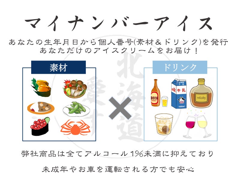 ・個人番号(「素材」と「ドリンク」)に基づき、あなただけの「マイナンバーアイス」を作成(組み合わせは無限大)