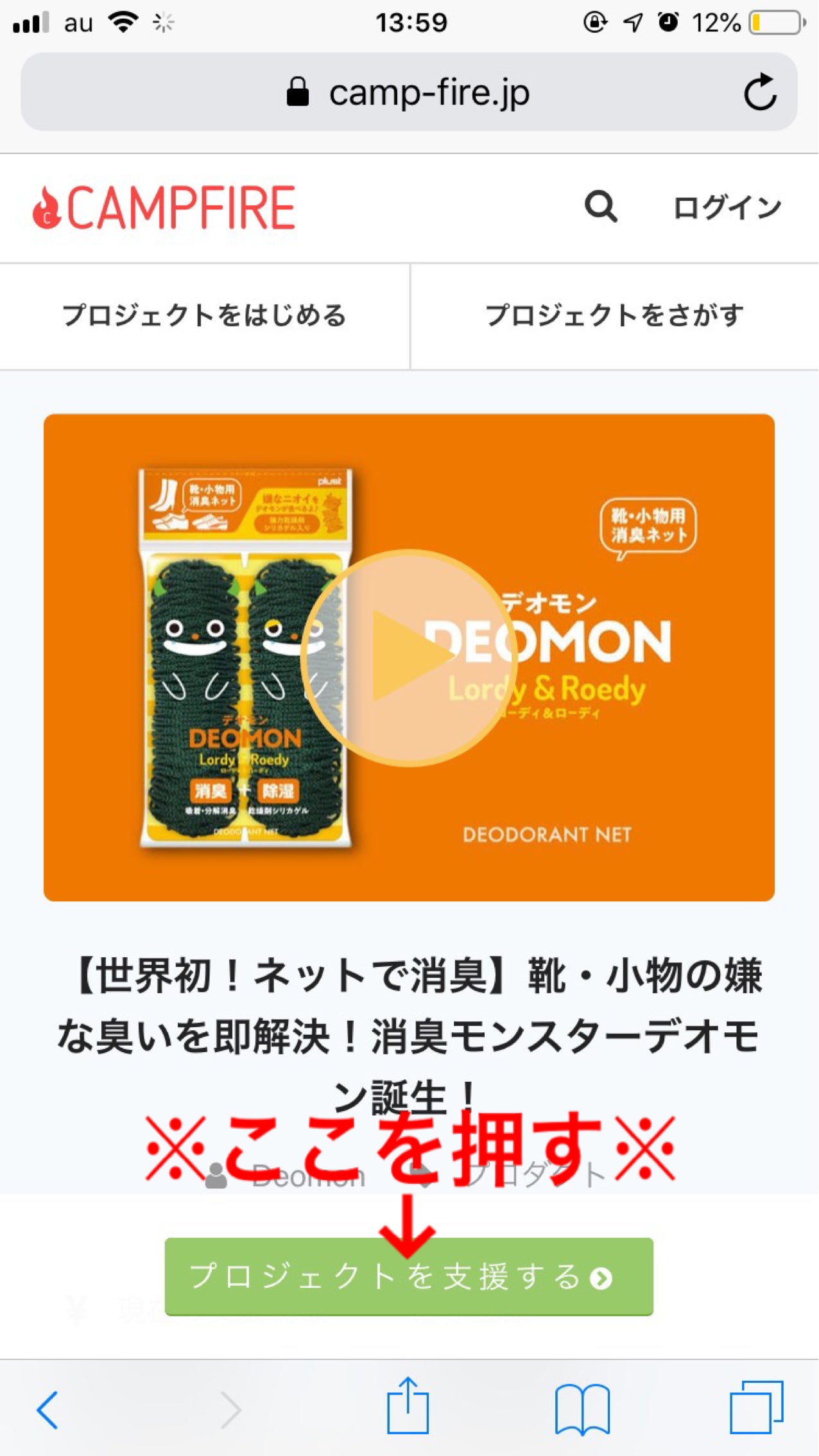 ①まず、DEOMONのプロジェクトページを開きます。