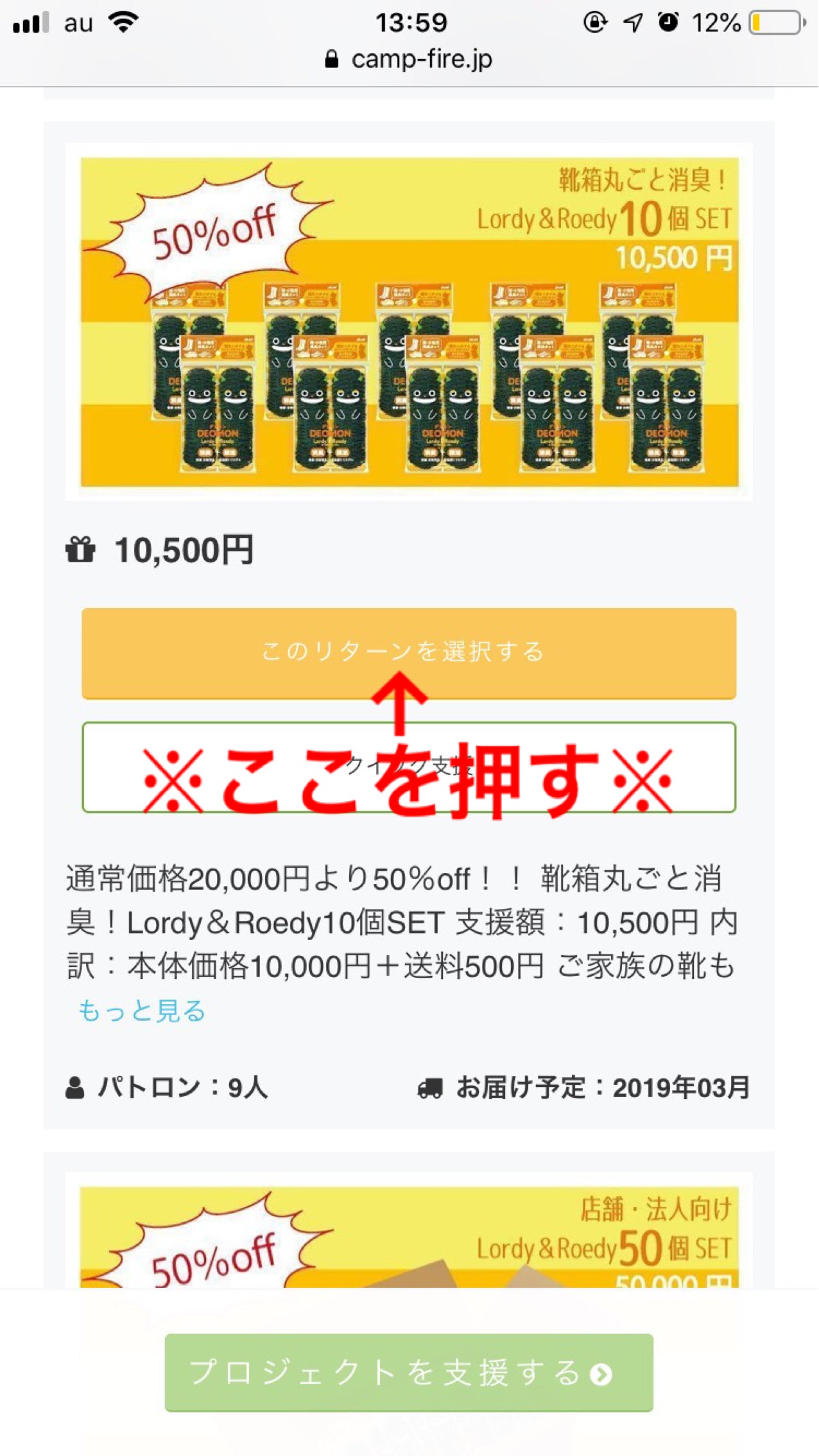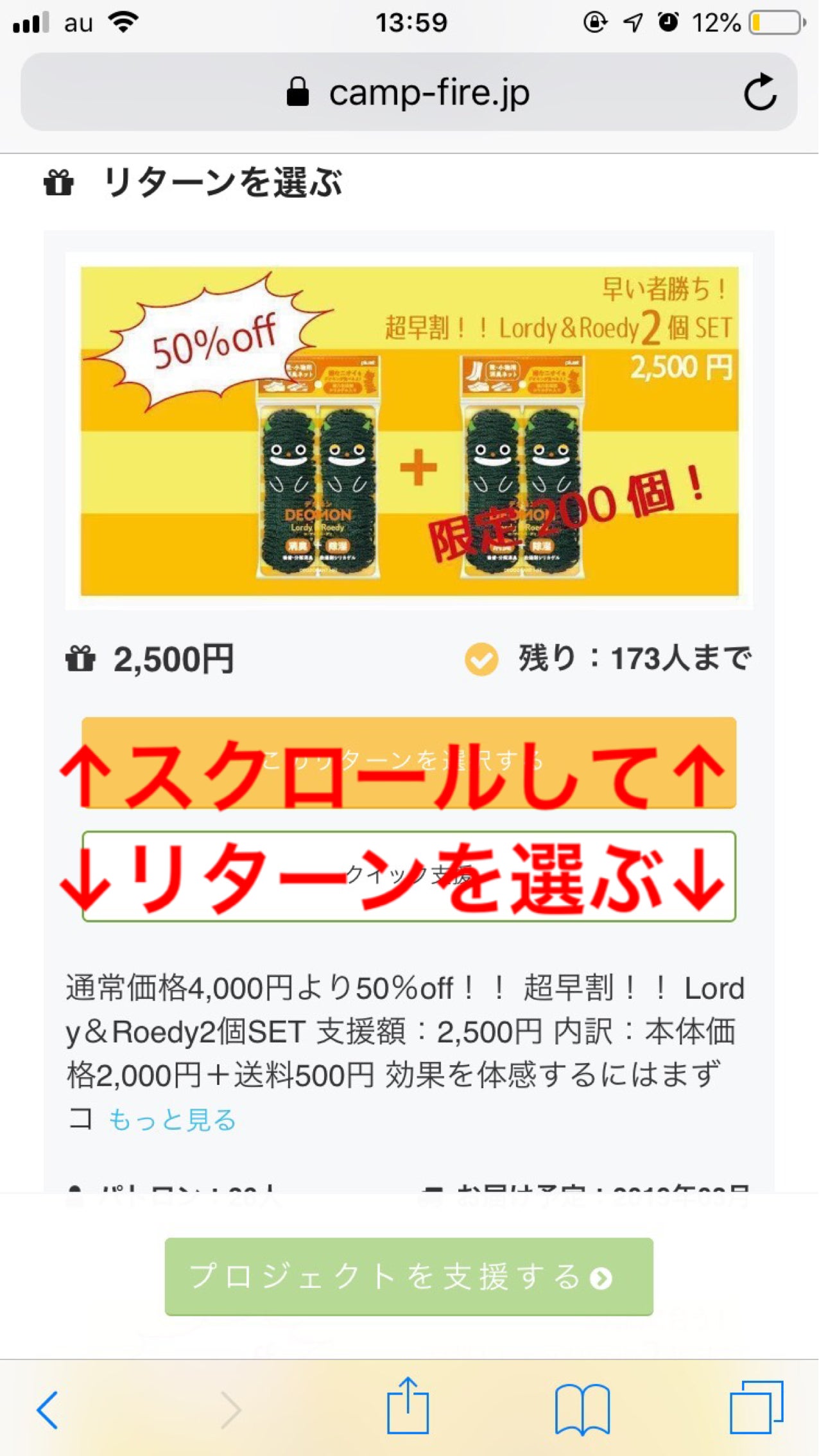 ③支援したいリターンが決まったら【このリターンを選択する】を押します。