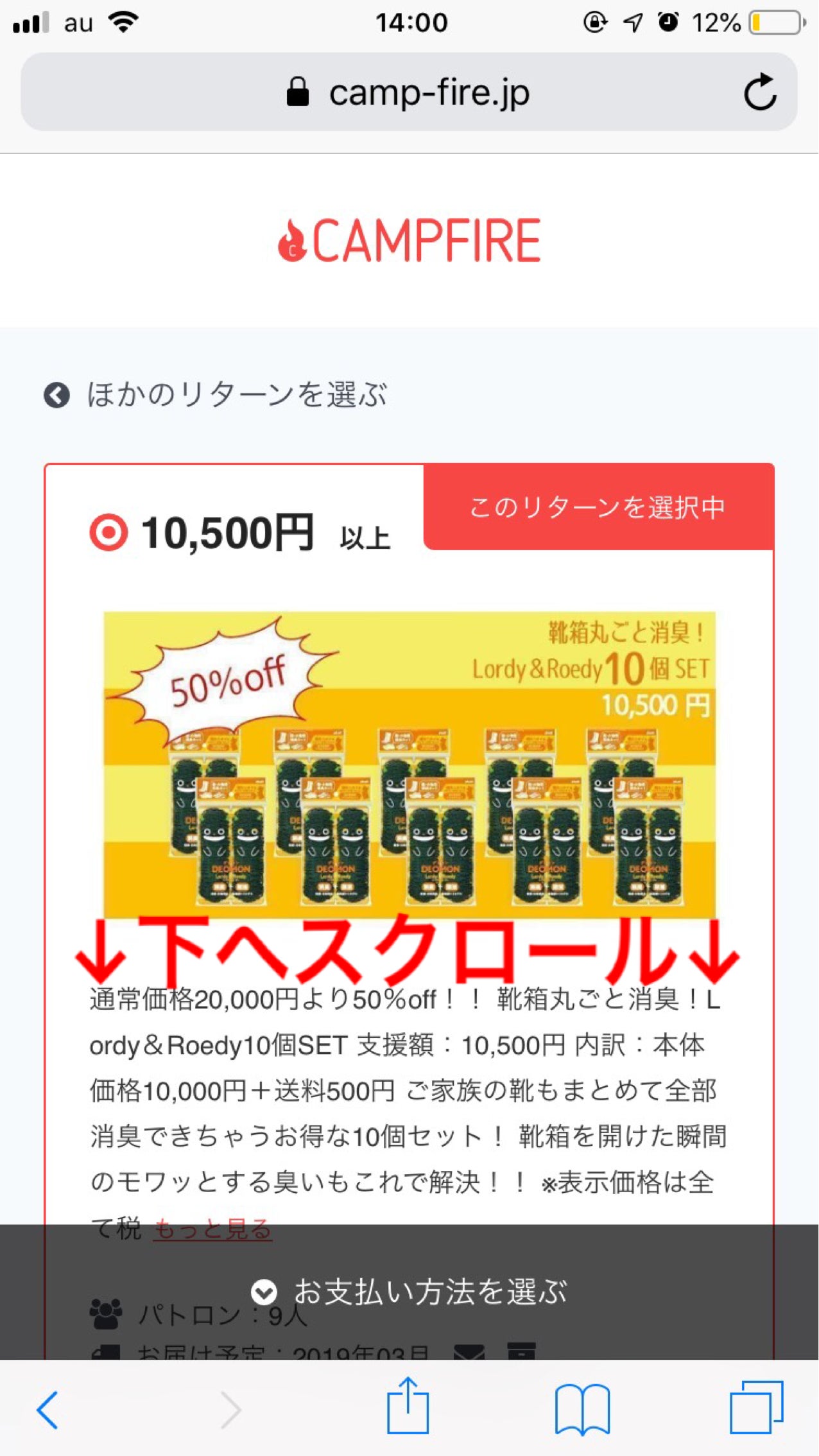 ②リターン選択画面に移動するので、支援内容を確認しリターンを選びます。