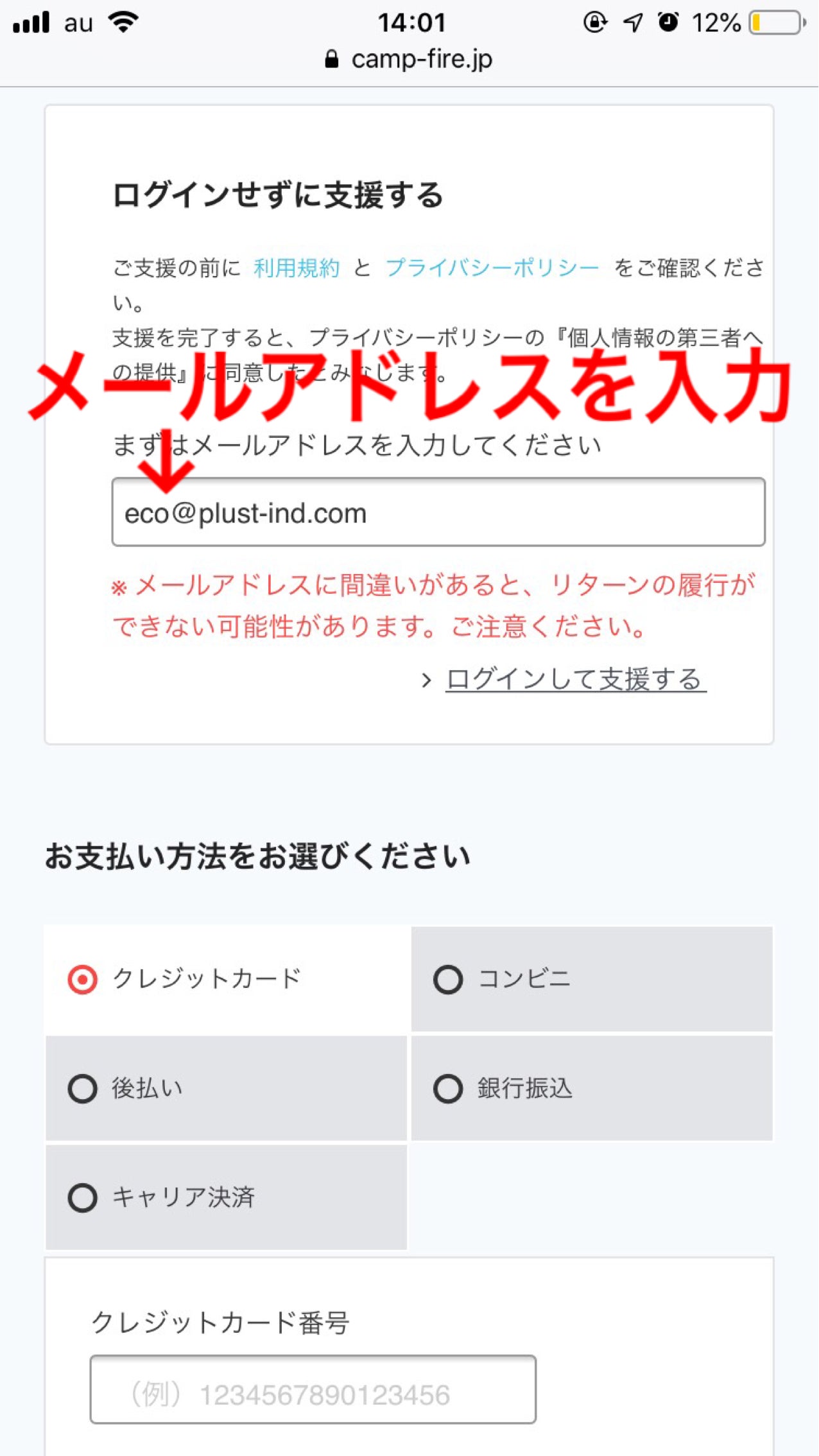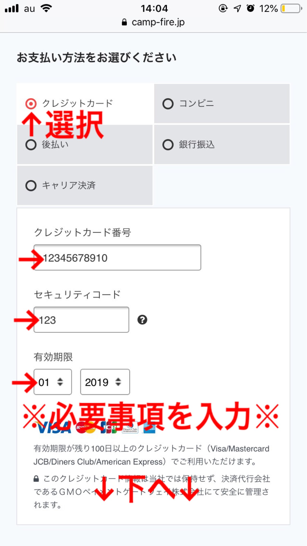 という事で今回は、一番選択数の多いクレジットカード決済について写真つきでご説明したいと思います!(資料が私のスマホのスクリーンショットですので、PCの方は違うかもしれません。あしからず。)