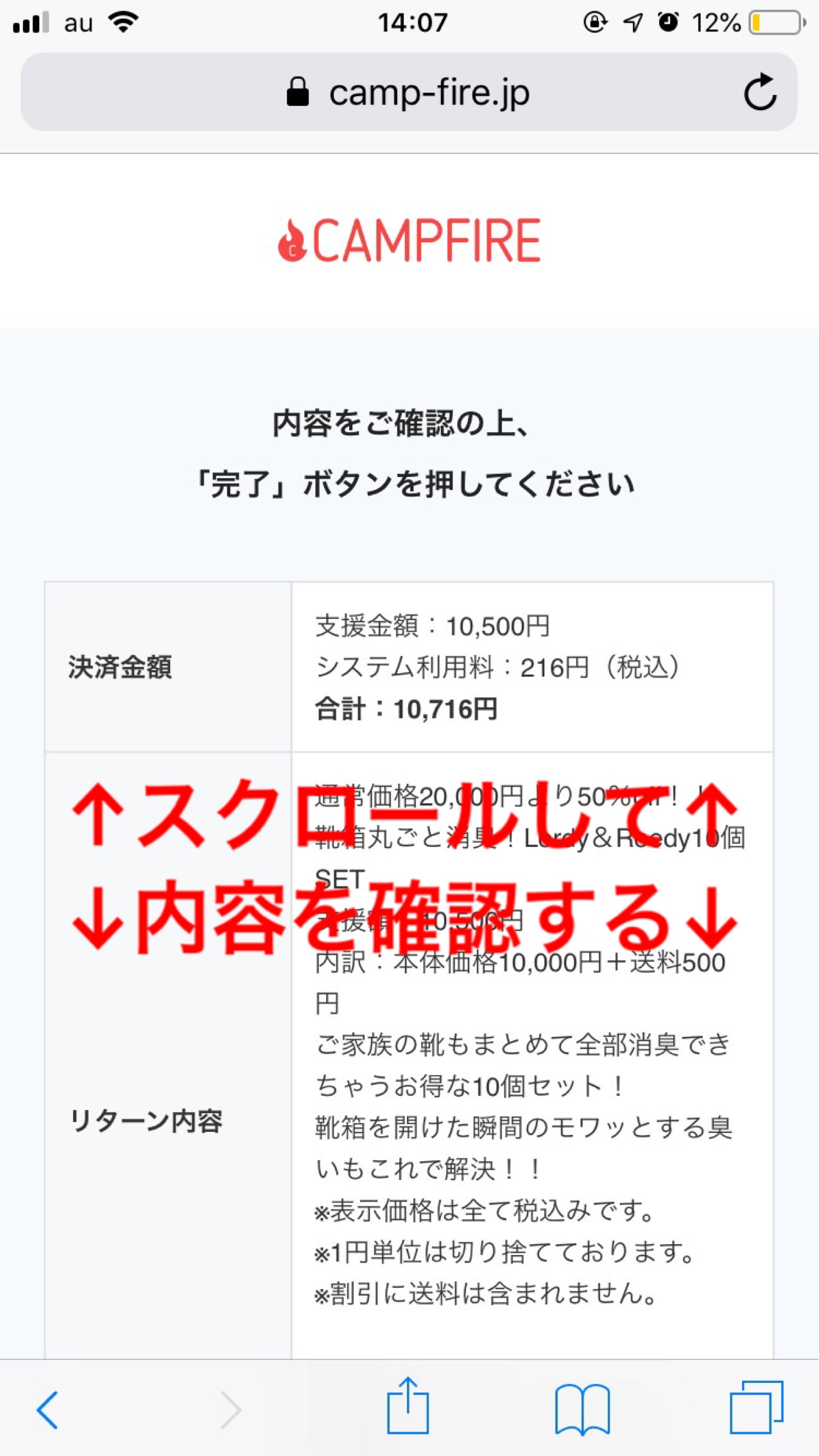⑨こちら↓の画面が開きますので、下へスクロールし内容を確認してください。