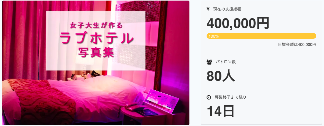※風営法上18歳未満の方にはご支援頂けません。