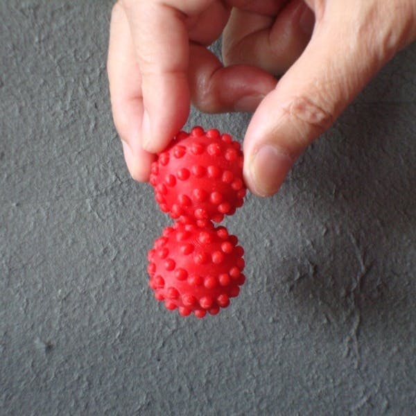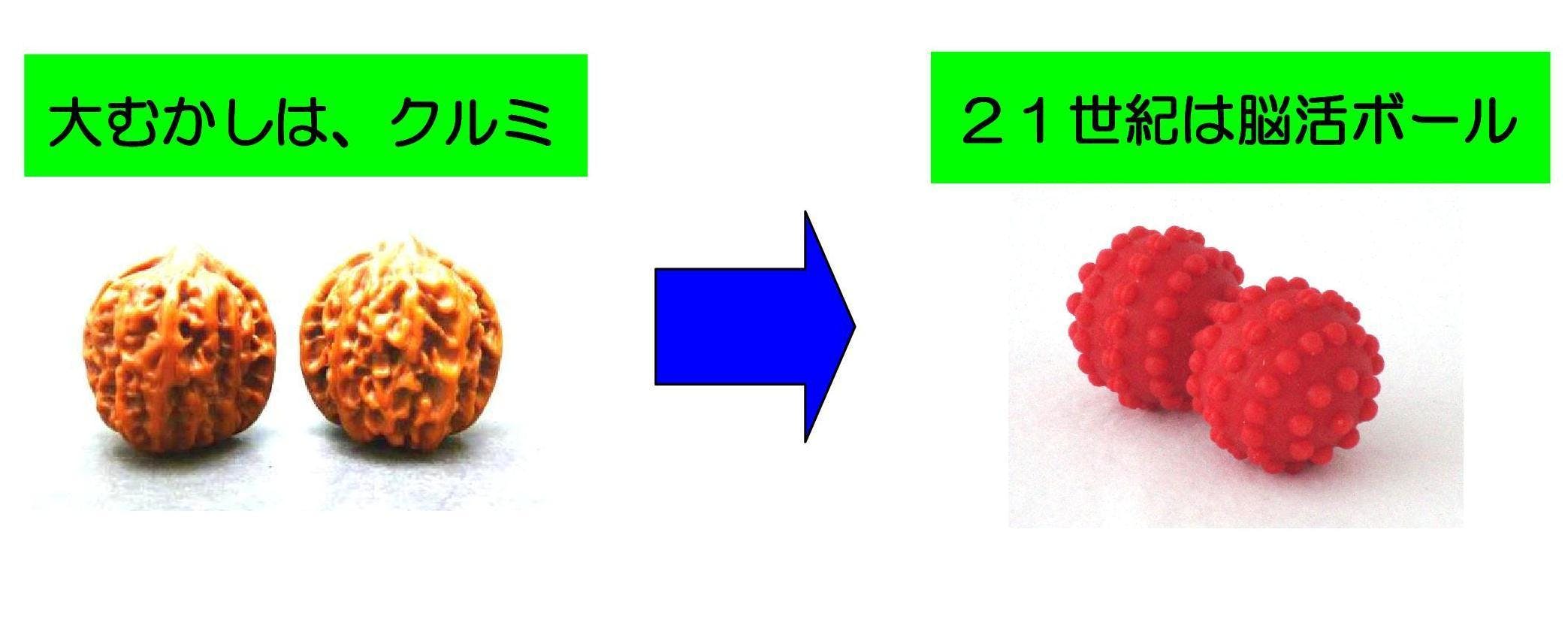 説 明 :手のひらのツボと脳・五臓六腑は、血管や神経でつながっています。昔使われていたクルミの実よりもツボの刺激を増すために、強力な磁石を入れた磁気効果と、表面を凸凹にした機械的効果を施して21世紀型脳活グッズに改良しました。体全体をコントロールしている脳が疲れたり、壊れたり、油切れするとカラダに障害が発生します。そうならないように、「脳活ボール」を世の中に送り出しました。