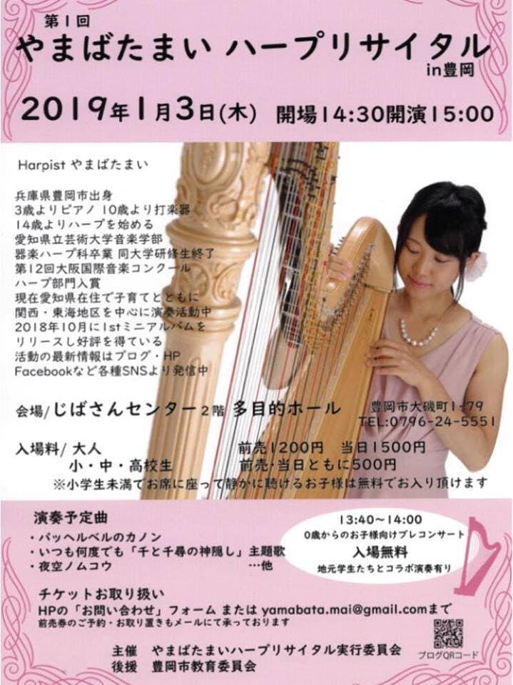 私から皆様へ恩返しできることのひとつは音を届けること。まずは私を育ててくれた町、豊岡の町の皆さんへ、心を込めてハープの音色を届けたいです。