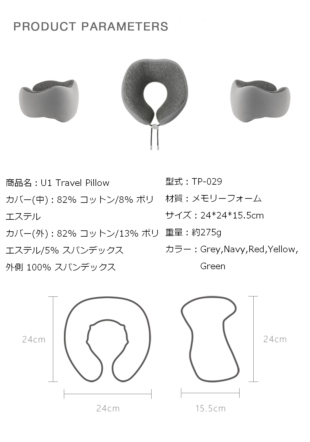 U1 Travel Pillowに使用しているメモリーフォームは効果的に体圧を吸収し、圧力点を下げゆっくりと変形することによって圧力に適応することができ、それによって頸椎を弛緩させて首がリラックスします。