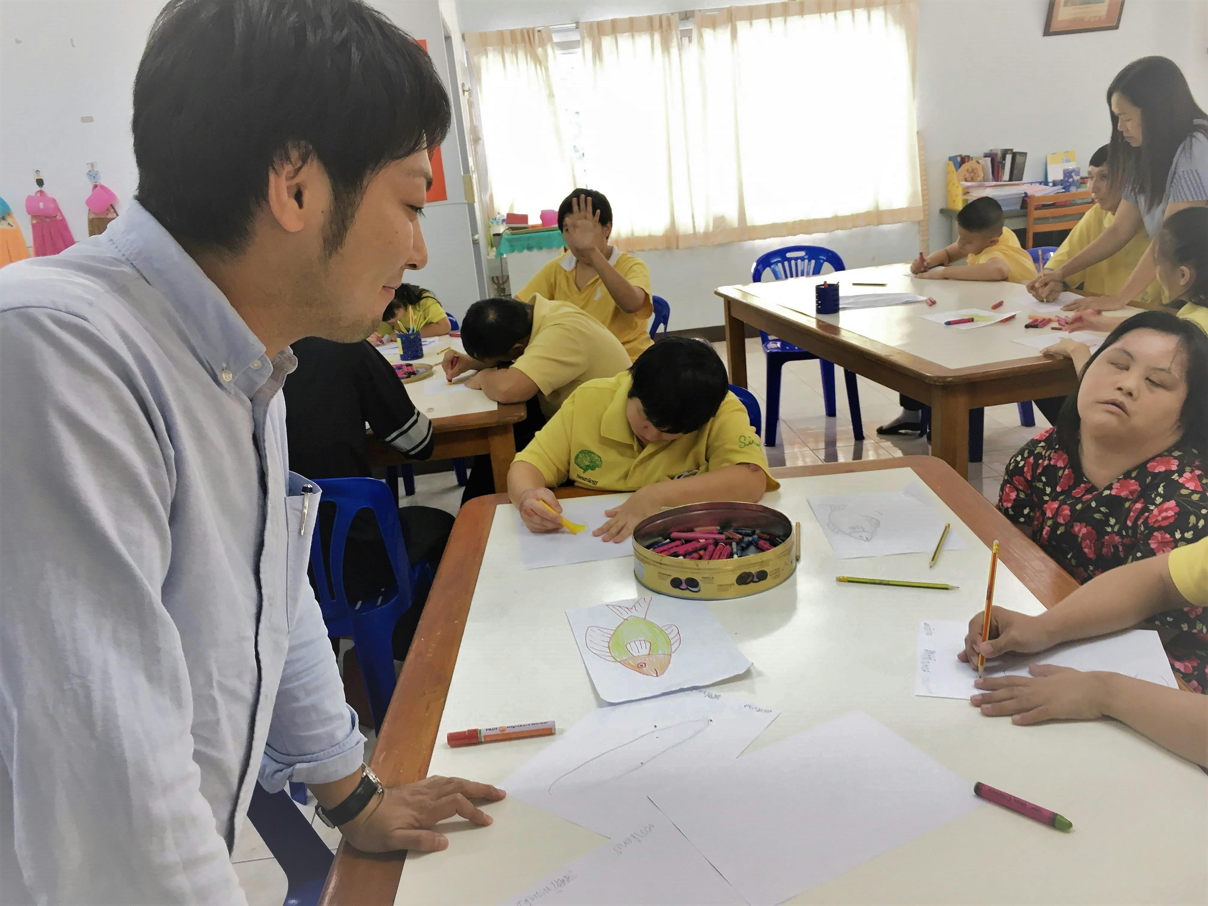 みんなで魚の絵をかいて、色を塗るアクティビティを行った際に1人の女の子が、