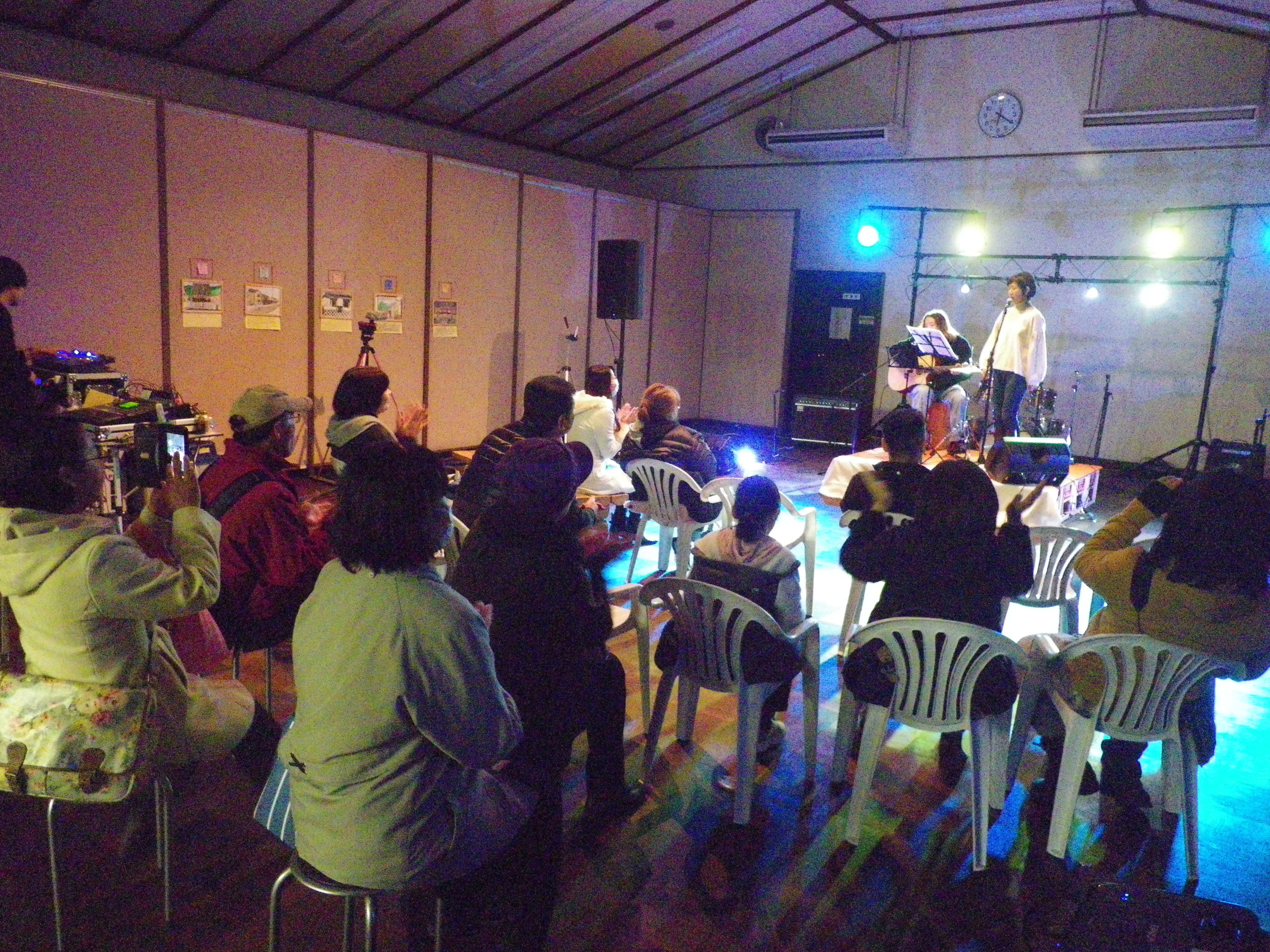 こうして創り上げた、11月19日〜11月25日の企画。当初の予想よりはるかに多い、延べ337人のひとにご来場いただきました。平日日中は市内中学校の地域調べの展示と千曲市PRビデオの展示を行いました。ビデオの展示が好評でした。夜は一日一アーティスト企画として日替わりアーティストによるライブコンサートを行いました。電車から降りて来た会社員や高校生が立ち寄ってくれ、来場者は尻上がりに多くなってきました。祝日の金曜日、午前は高校生が運営、高校生の音楽系部活動による発表会を行い、合唱、ダンス、ギターマンドリン、軽音楽の各部活動に発表していただきました。こちらも大盛況で、このイベントだけで100人以上が来場してくれました。午後は小学生向けの実験教室を運営。事前のPR不足もあり、来てくれた小学生は少なかったものの、来てくれた小学生とともに楽しく取り組むことができました。〈11月企画の写真〉