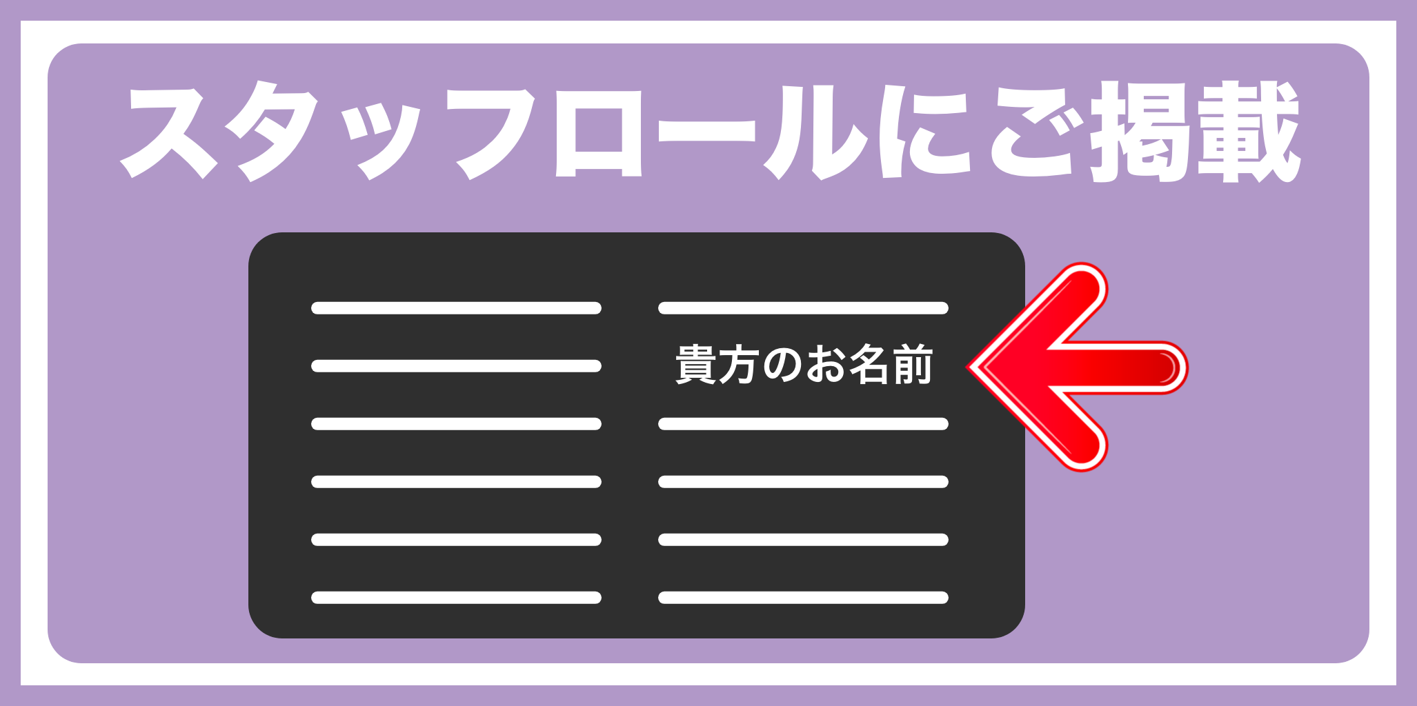 ゲーム内のスタッフロールにてあなたの名前を掲載いたします!
