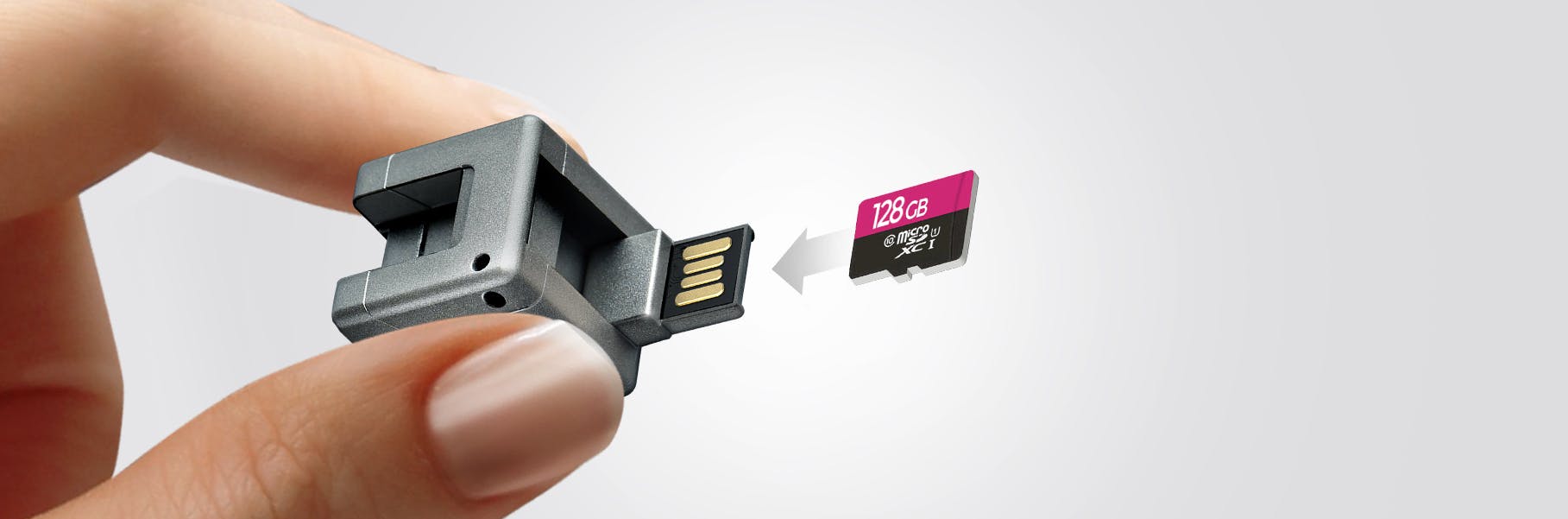 内蔵のmicroSDカードリーダーは最大128GBのメモリ転送をサポートします。スマートフォン用のUSBフラッシュドライブやOTGとして動作します。
