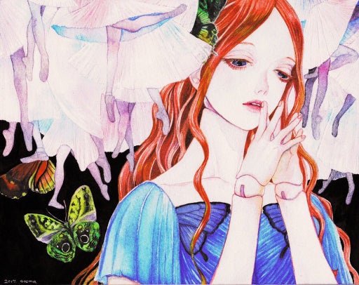 ▲繊細な表情が透明水彩のにじみの美しさで際立ちます