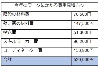 私たちは前記したようなワークを計画しており、実行にかかる費用は次のようになっています。