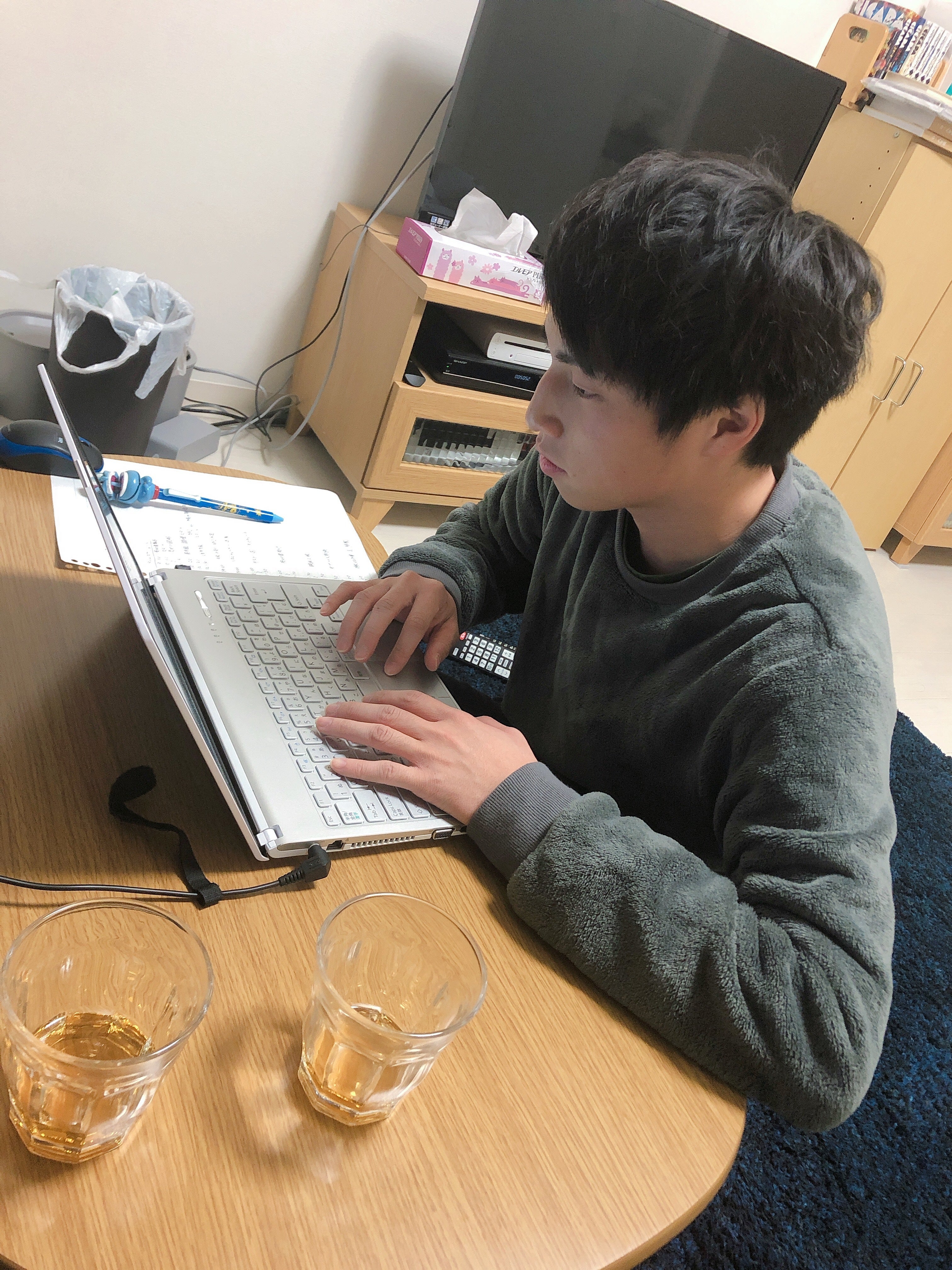 写真は、メディアにプレスリリースを打っているメンバーの開士(カイト)。
