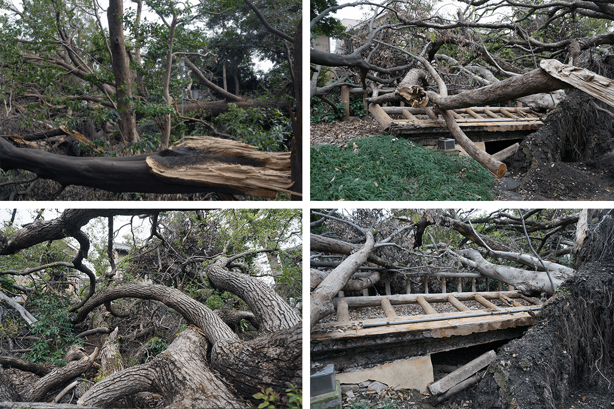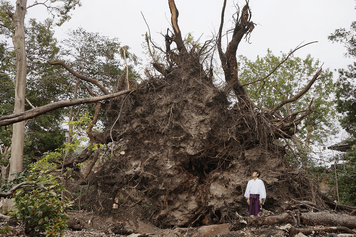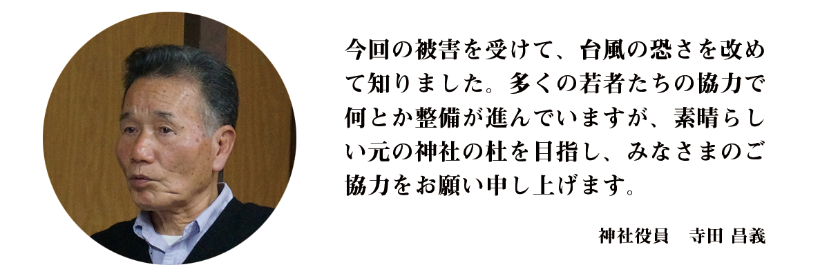 当社に隣接する杜(森)も、この台風により、多くの木々が倒れる被害を受けました。