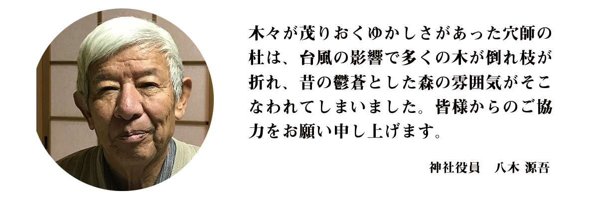 ● 御神木の周りの安全確保のための整備費用、および倒木の撤去費用
