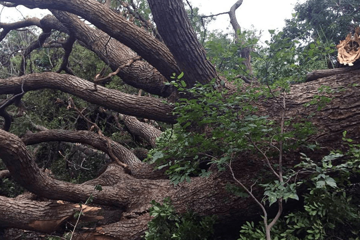 ただ、樹齢600年のクスノキはあまりにも大きすぎて撤去することができず、倒れたままの状態で今も残っております。