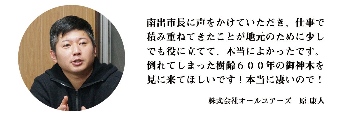 また、このプロジェクトを公開するにあたり、泉大津市出身で株式会社オールユアーズ代表の原康人さんにもご協力頂くことになりました。