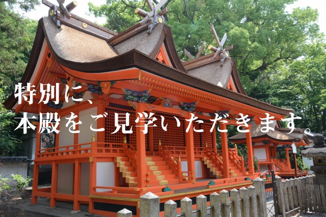 本年度内に修復が完了する、天忍穂耳尊(アメノオシホミミノミコト)と栲幡千々姫命(タクハタチチヒメノミコト)の主神二体を特別にご拝観いただきます。さらに「通常は公開していない本殿のご見学」及び参加記念として「鬼門封じの方除札」を授与いたします。