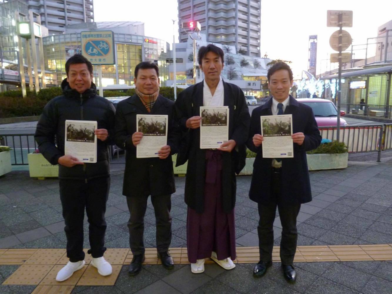 昨日の新聞記事の報告に続きまして、2月1日(金)午後5時半ごろから南出市長をはじめ地元の方々とクラウドファンディングのチラシを配りました。