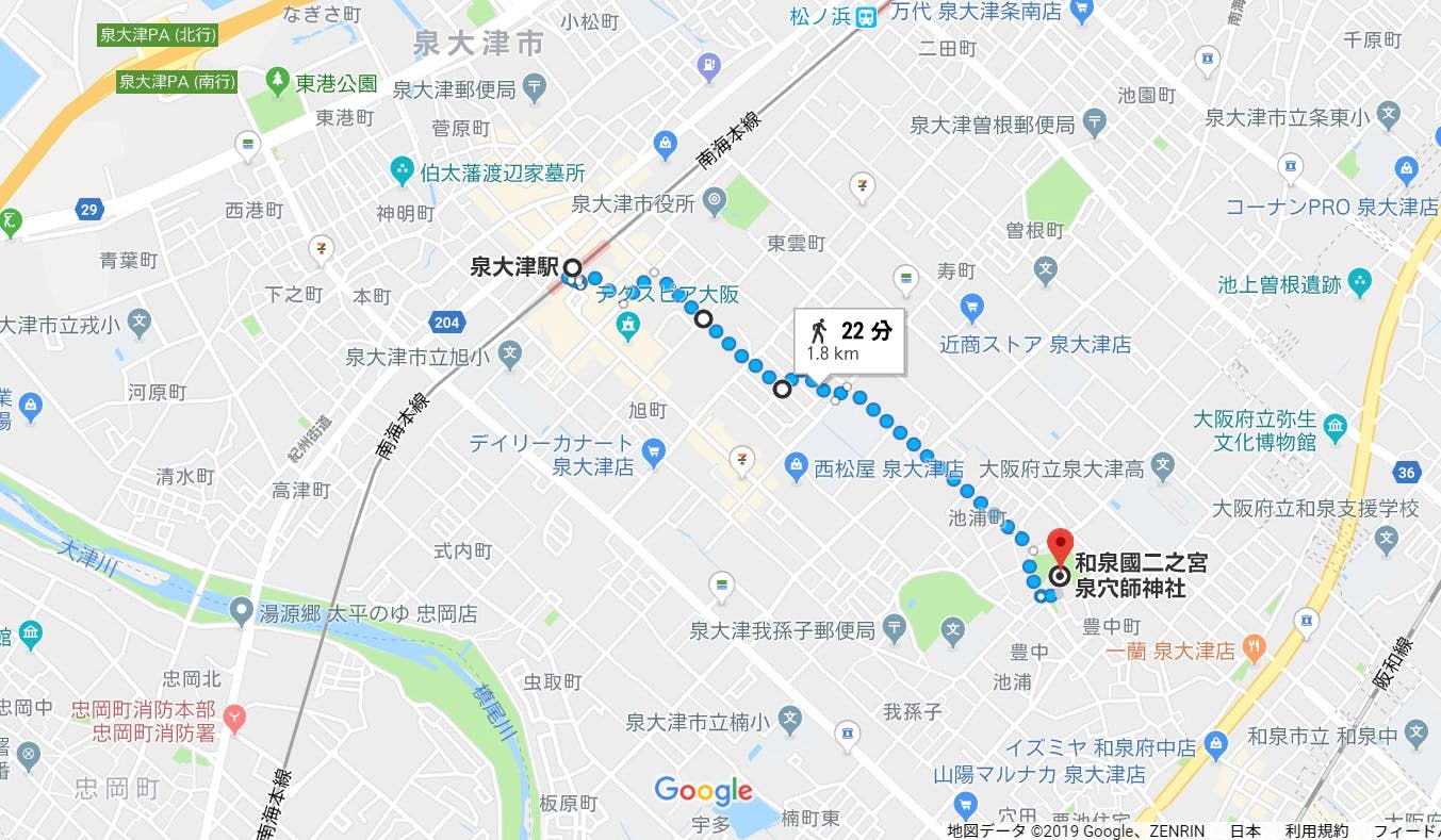 南海本線泉大津駅からは徒歩22分