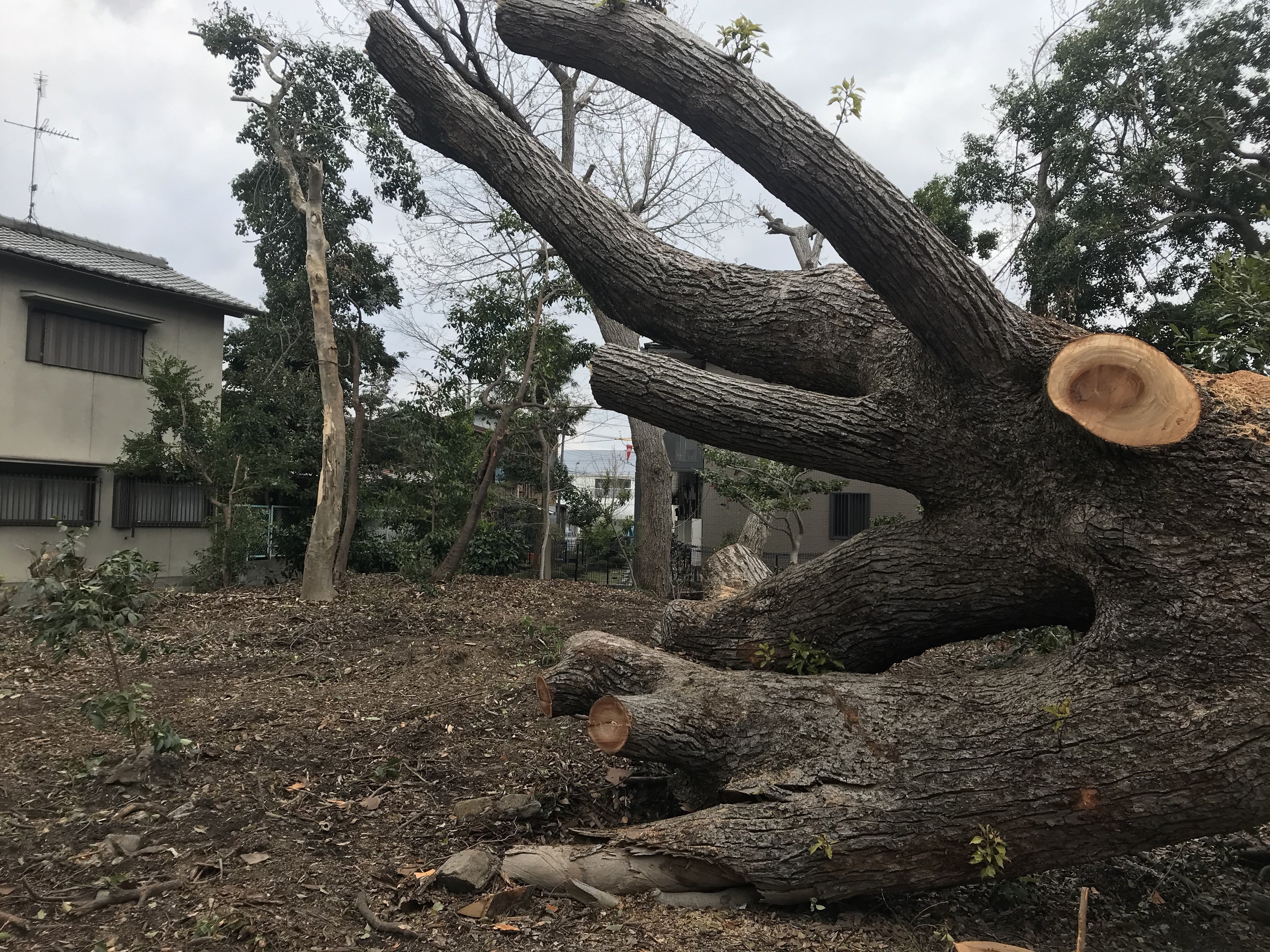 さて、3日前より本格的に御神木及び周辺の整備にとりかかっております。御神木のクスノキの枝の先端は折れる危険がございましたので、安全確保のため遺憾ではありますが剪定させていただきました。