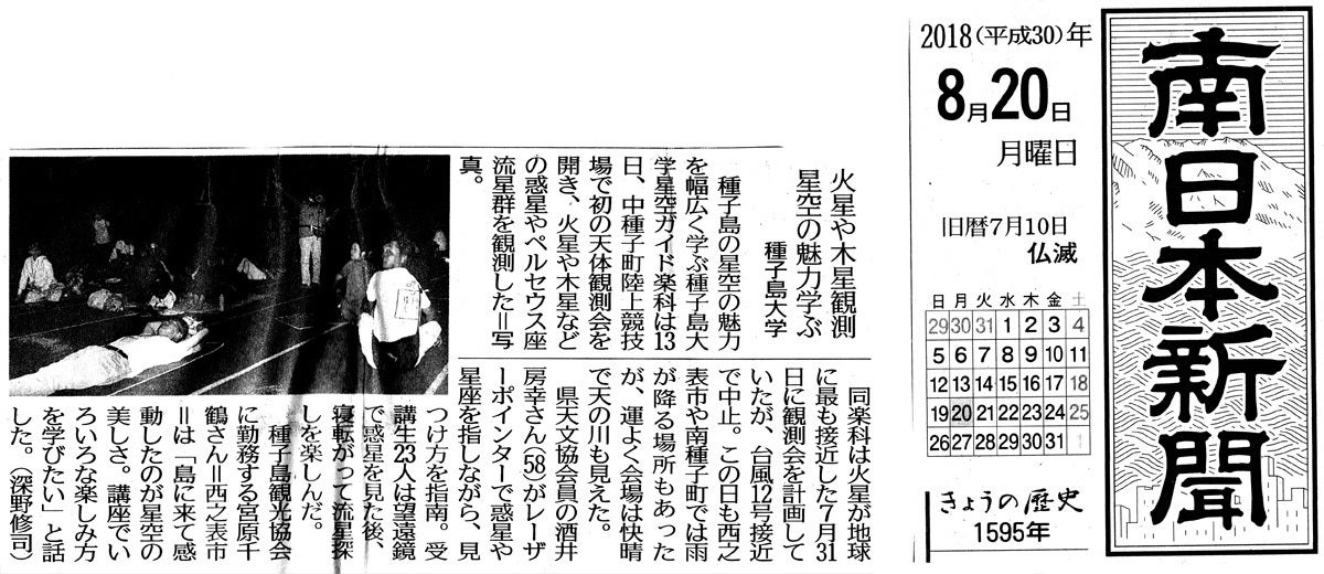 【中種子町】陸上競技場で流星群を観察(種子島の星空は必見)
