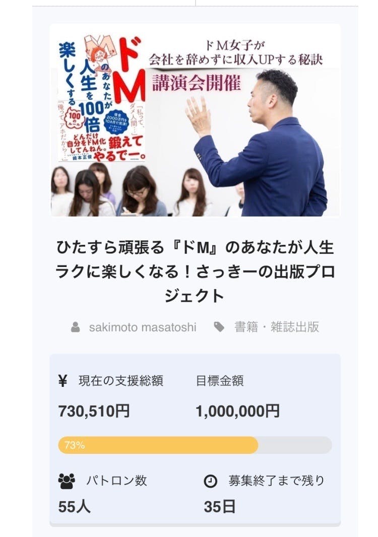 たった半日で、目標の73%・55人の方にご支援頂いています!