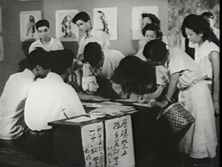 「原爆の図第10部《署名》を見よう」会場では、映画『原爆の図』(1953年/白黒/17分)も上映しています。機材的な問題があって、時間が空いたときだけの上映でしたが、明日からはモニタで常時流します。