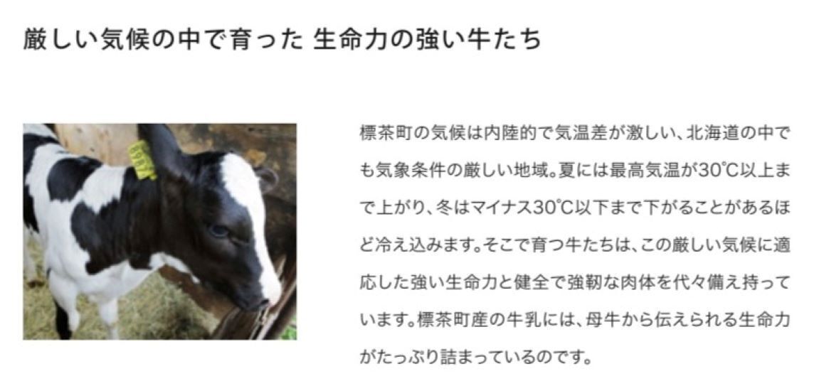 濃厚なのに、後味がさっぱりとした、北海道の環境が生んだ最高級のミルクです。