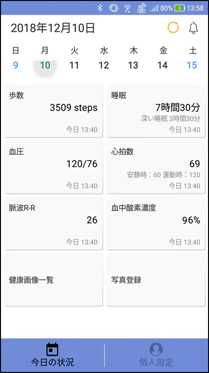 心拍数、血圧などの健康データに対して各個人で範囲を設定していただくだけで、