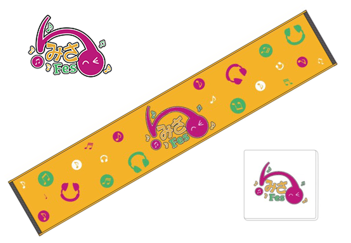フェスには、欠かせないマフラータオル♪みさFesのロゴと、藤田みさには欠かせないヘッドフォンと音符が楽しそうに踊っています。