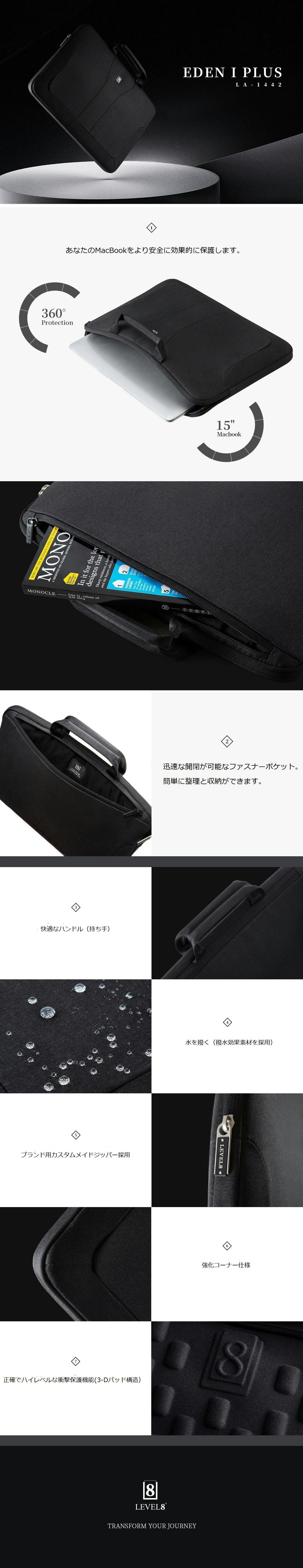 【LEVEL8】はデザインと機能性を重要視し、その開発に取り組んでいます。 アップルの消費者のユニークなニーズに合わせて、【LEVEL8】は機能性豊かなスリーブ、スリムケース、そして特にApple向けに作られたバックパックを新たに導入しました。 輪郭に沿ってスムーズに流れるようなデザインの製品フォルムは、Appleの洗練さと革新性にシームレスに対応するスタイルを作り出します。 【LEVEL8】の設計手法は、フォームが機能に正確に従うという明確なコンセプトを生み出しました。