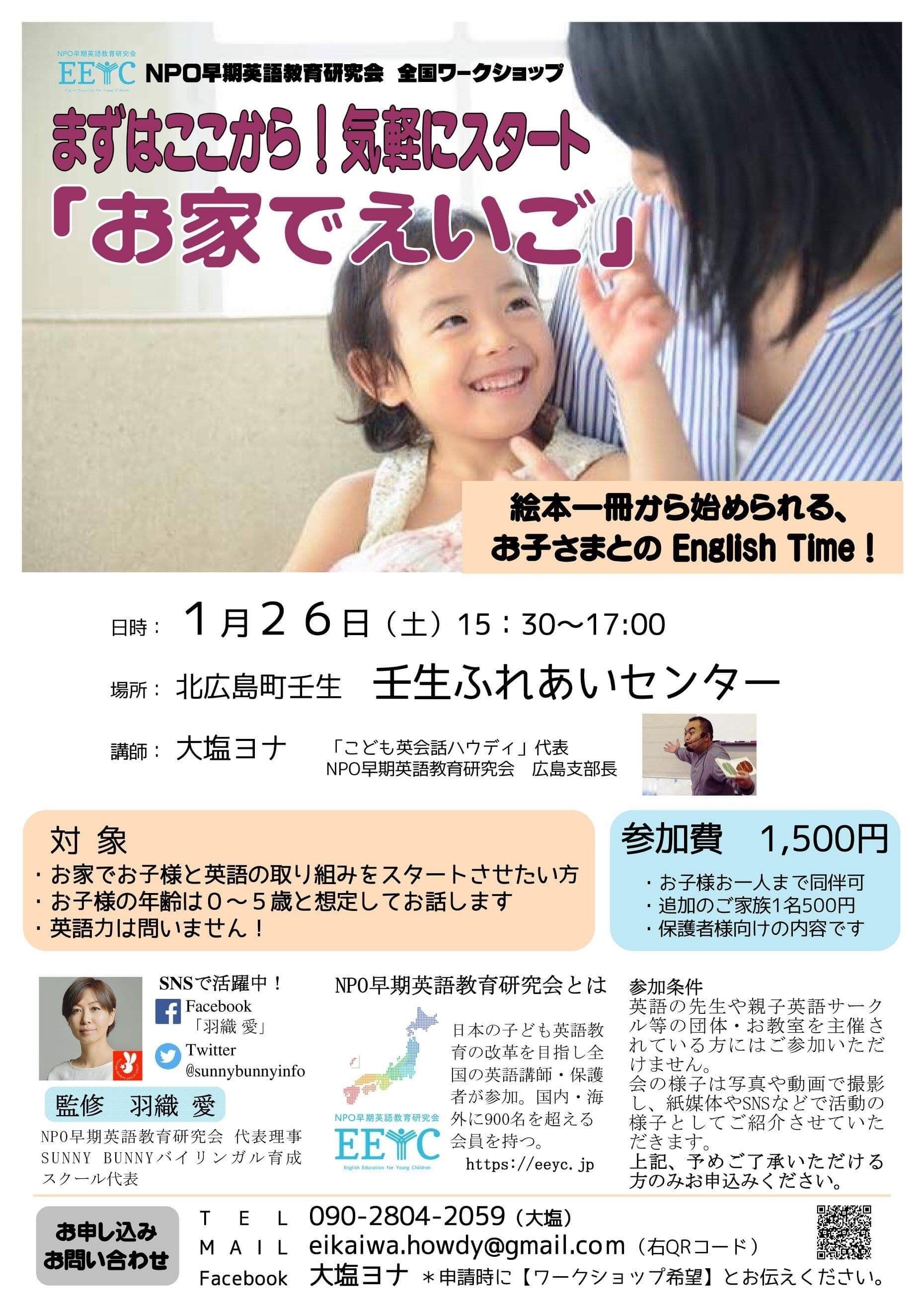 NPO早期英語教育研究会の全国一斉ワークショップ【まずはここから!気軽にスタート『お家でえいご』】を広島県でも開催します!