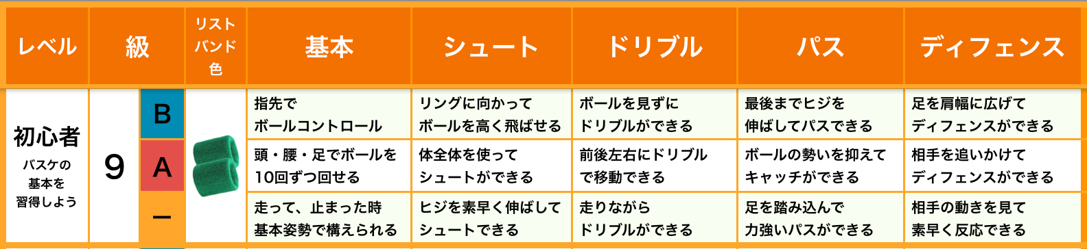 私が運営するバスケスクールにて実際に使っている指導カリキュラムなので、