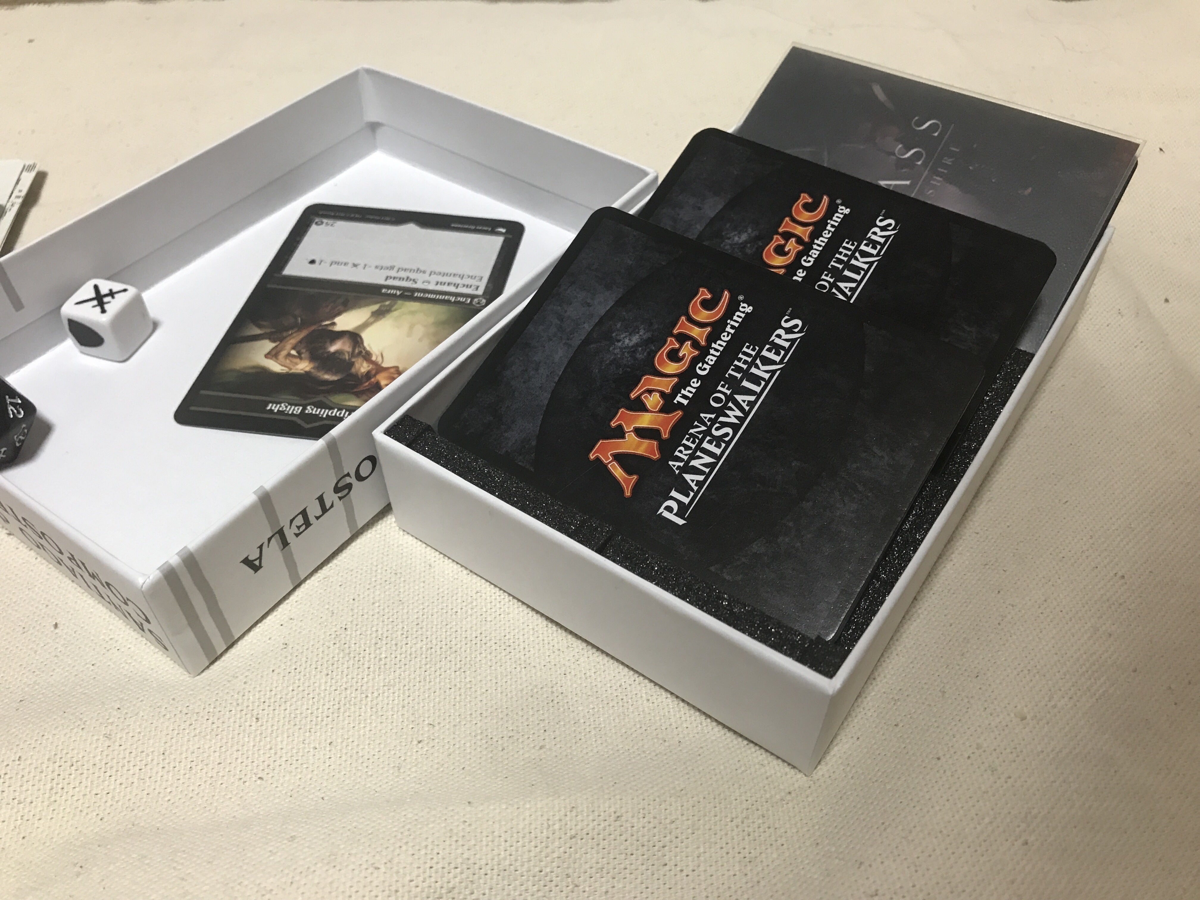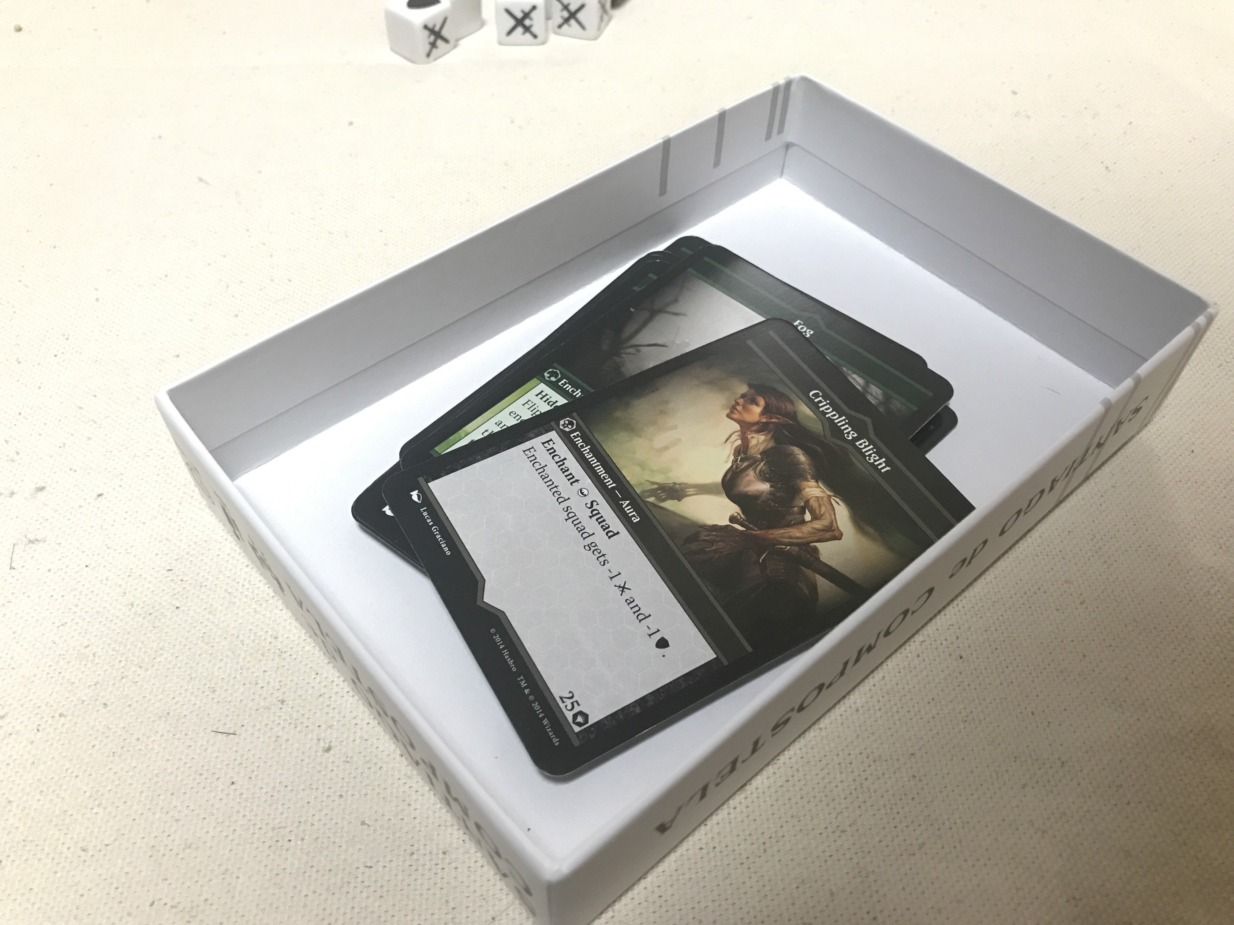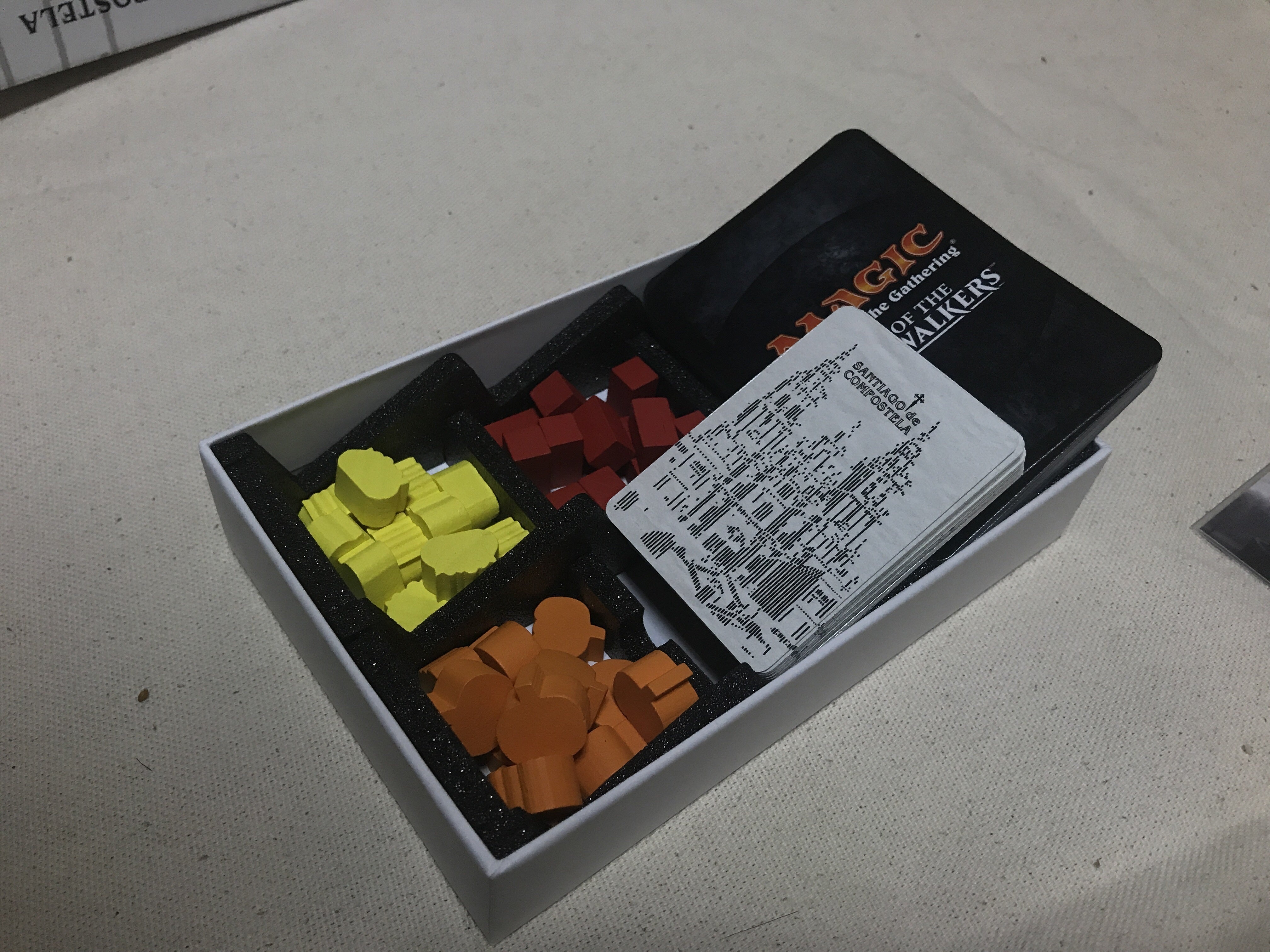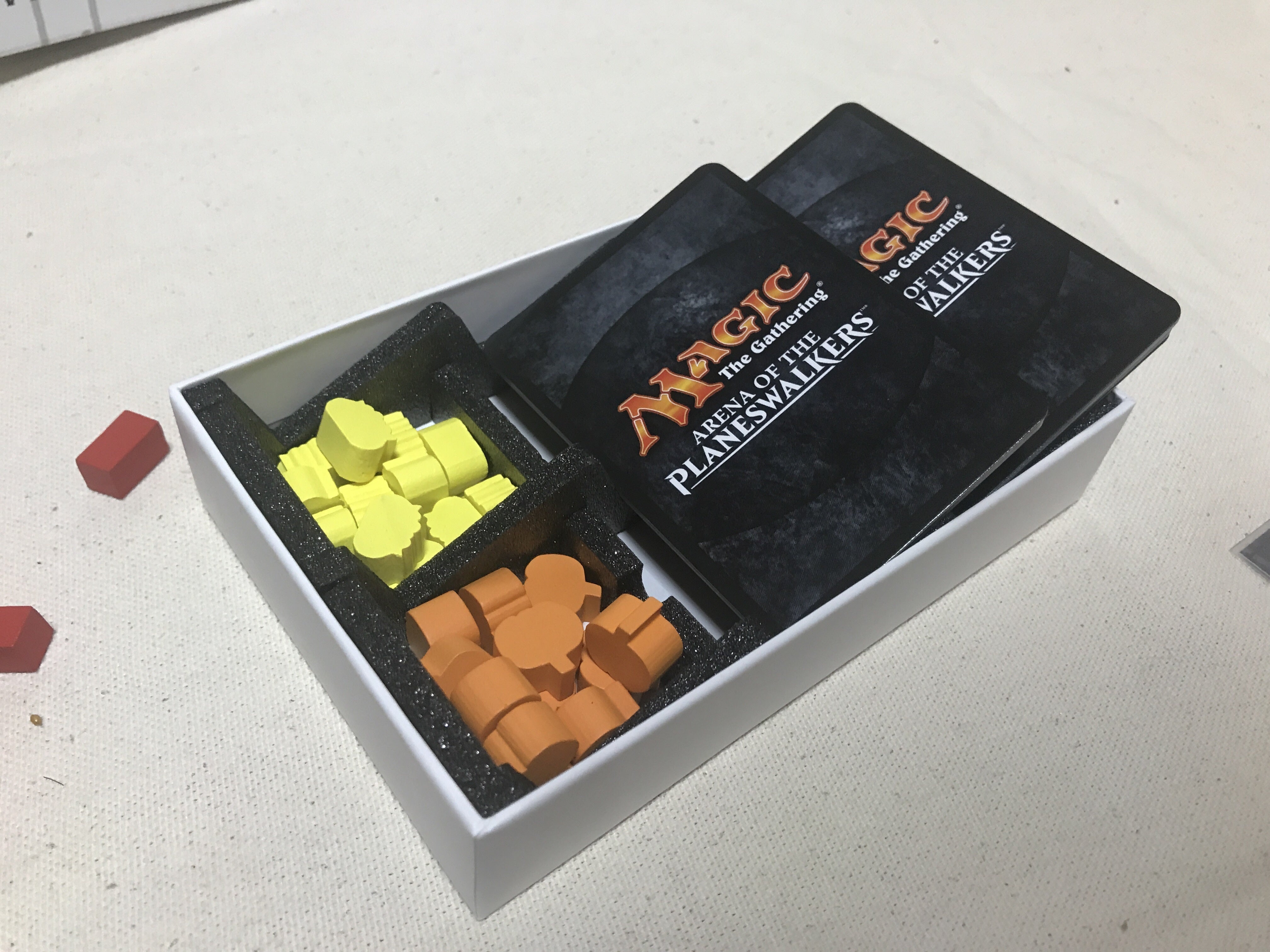 そこで、箱の中身を見直し、ゲーム中はカードスタンドやトークントレイとしても使用できるように改良しました。