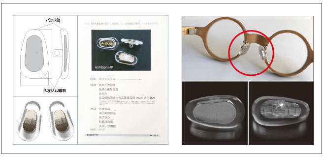 強力なネオジム磁石をメガネパット内に完全密封する特殊技術によって、磁気の力が調整され安心安全も備わっています。