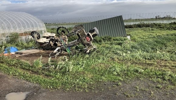 台風でビニールハウスが飛ばされて、中の野菜がほぼダメになり、